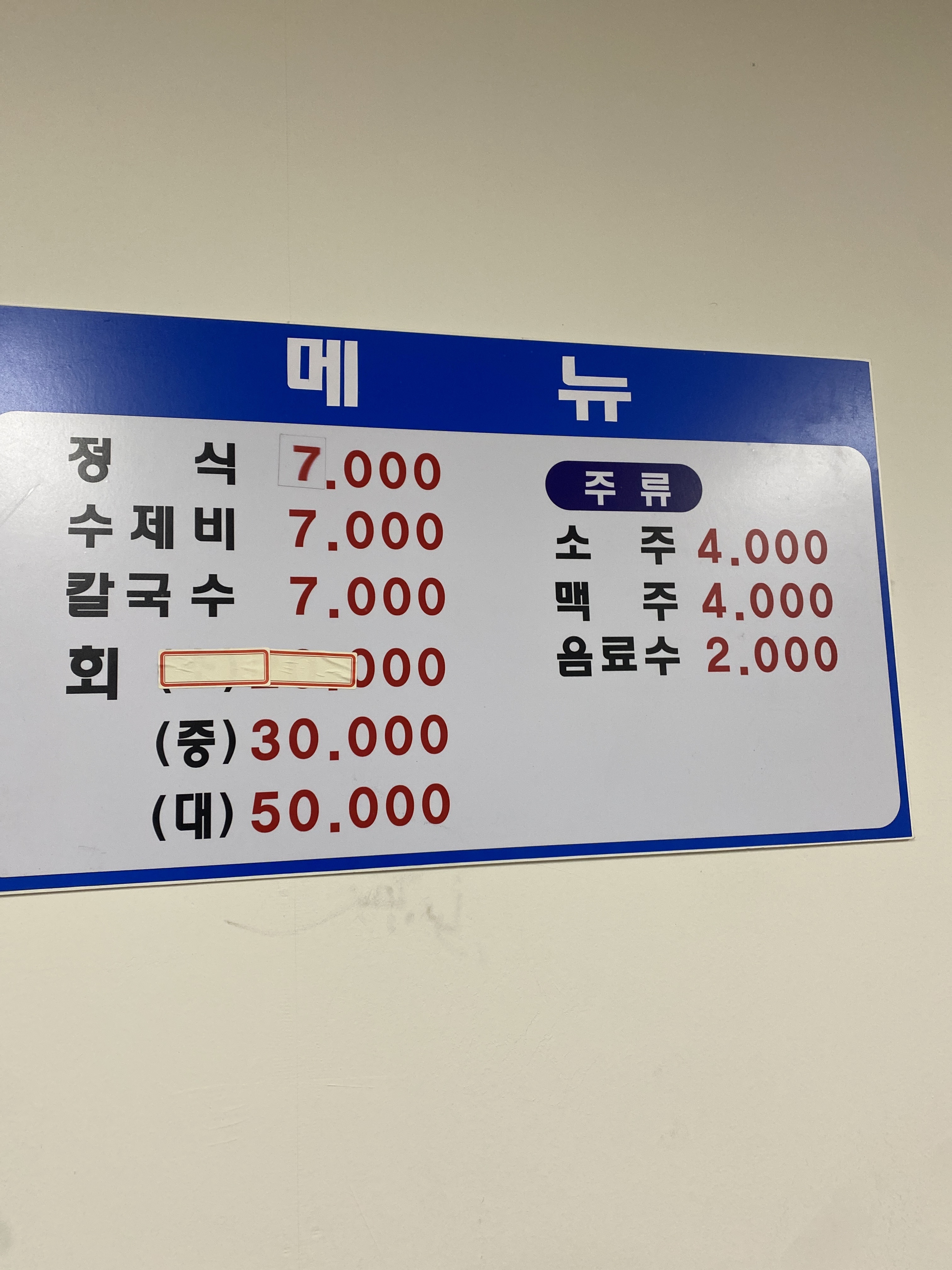 • 수제비 7,000원