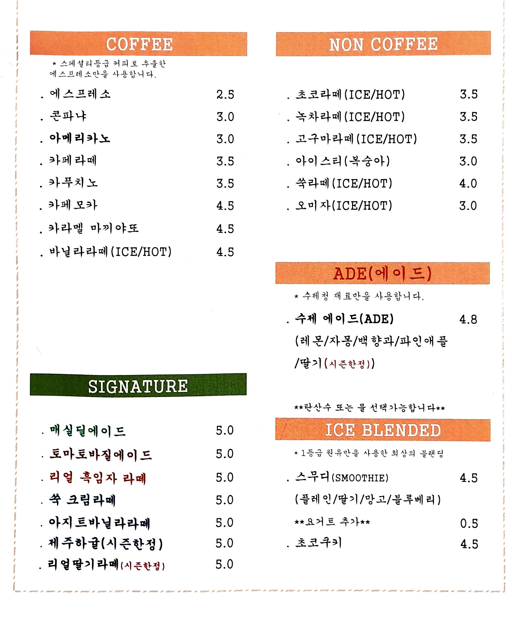 - 제주하귤에이드 5,000원