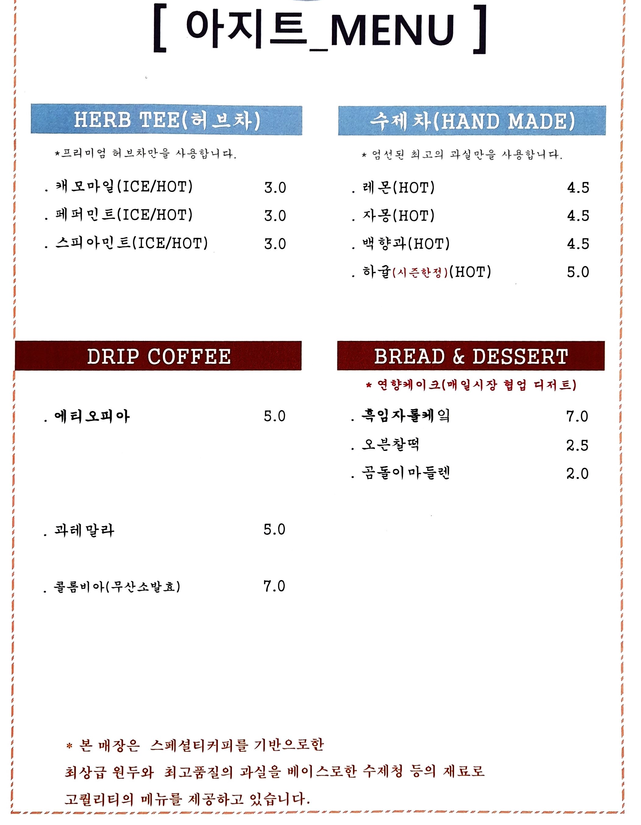 - 아지트바닐라라떼 5,000원