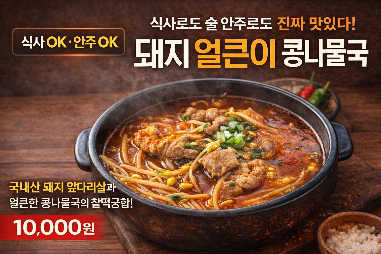- 돼지 얼큰이 콩나물국 10,000원