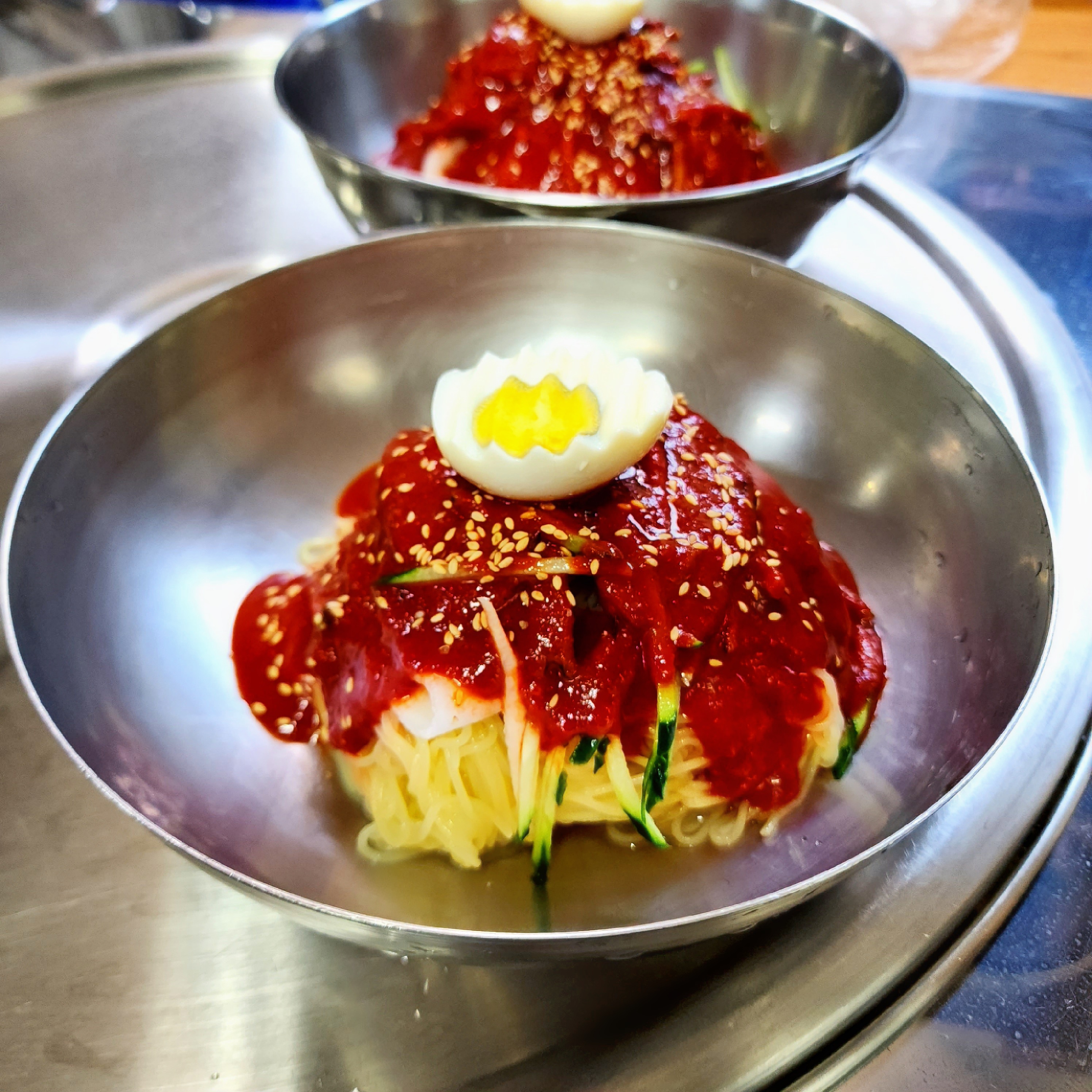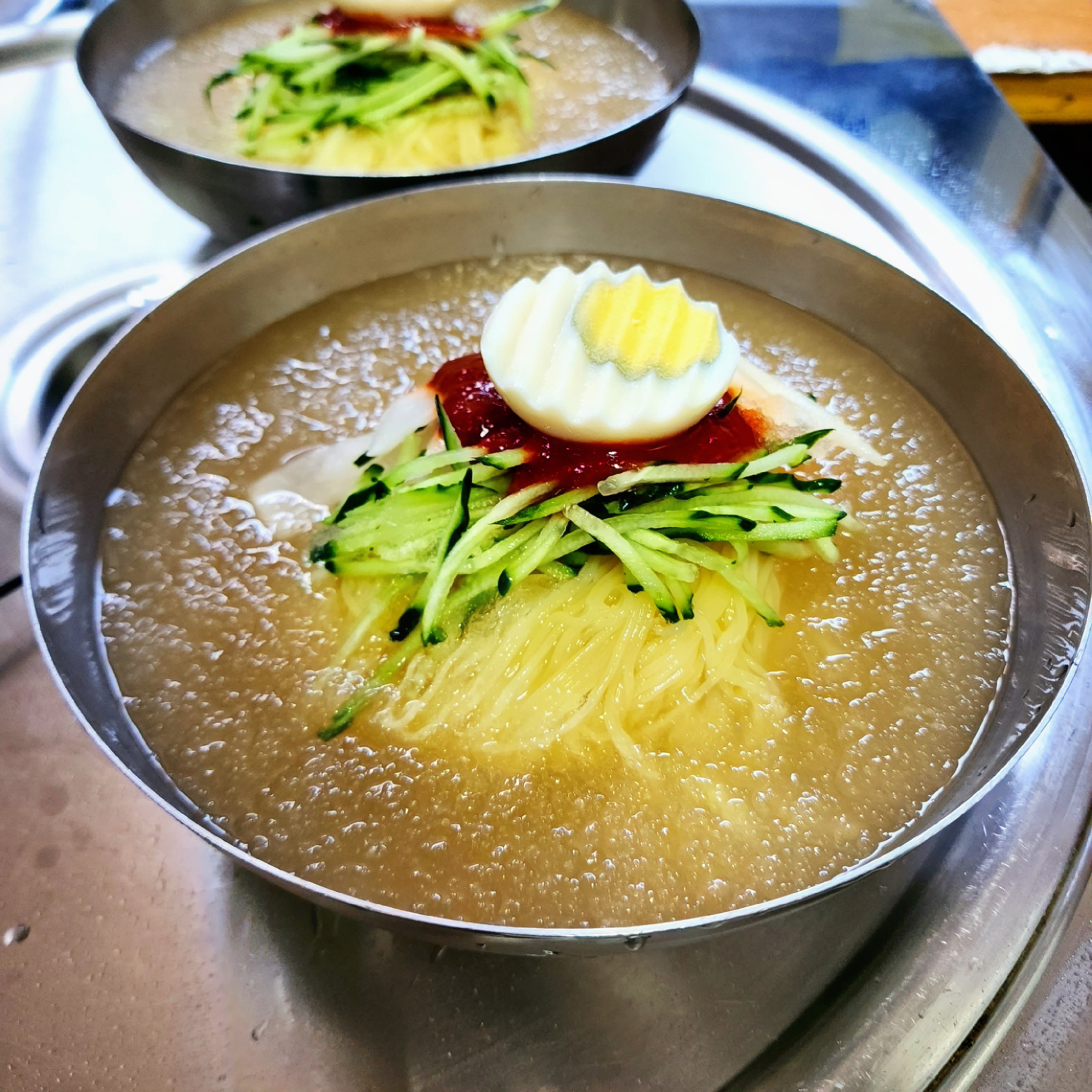 Juingong무더울땐 시원한 밀면이죠. 손님이 믾아도 기다림 없이 금방 나왔어요. 잘 먹고 갑니다