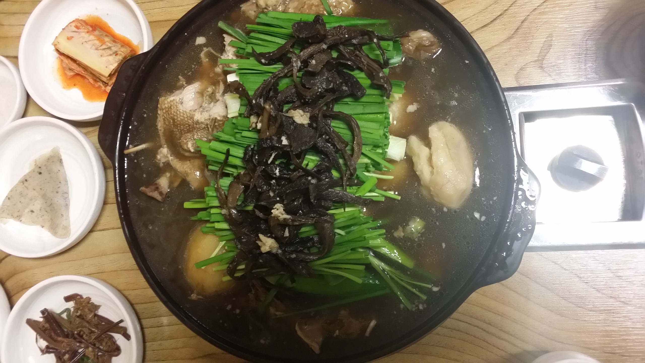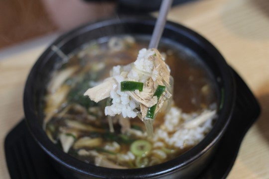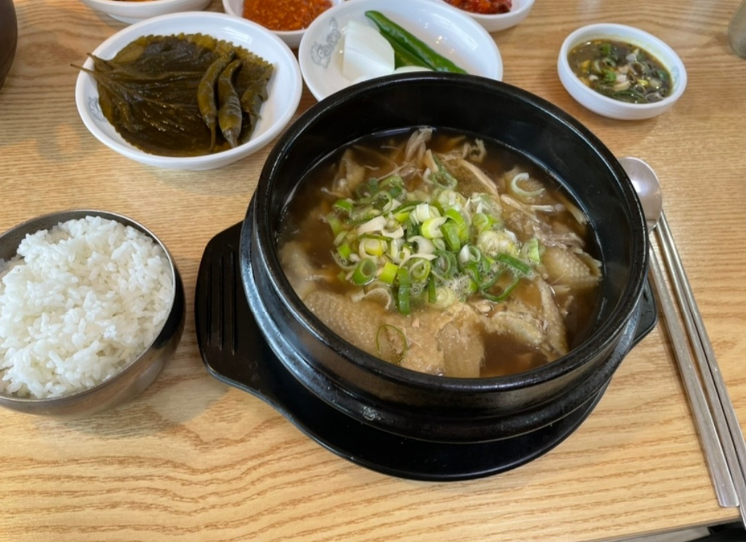 꽁불댕엄나무가 들어간 닭곰탕입니다. 날씨가 추워 따뜻하게 먹을 수 있습니다. 맛도 시원합니다. 물대신 나오는 헛개차도 일품입니다.