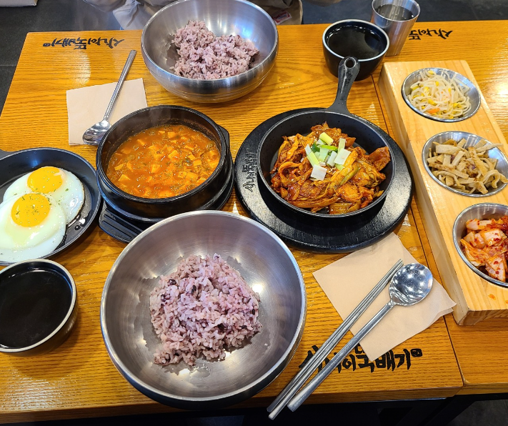 가격이 저렴해요. 밥과 밑반찬 셀프리필 가능해요. 메인메뉴들이 양념이 맛있어 쓱쓱 비벼먹으면 한그릇 뚝딱 직원들이 친절하고 매장이 깨끗해요.