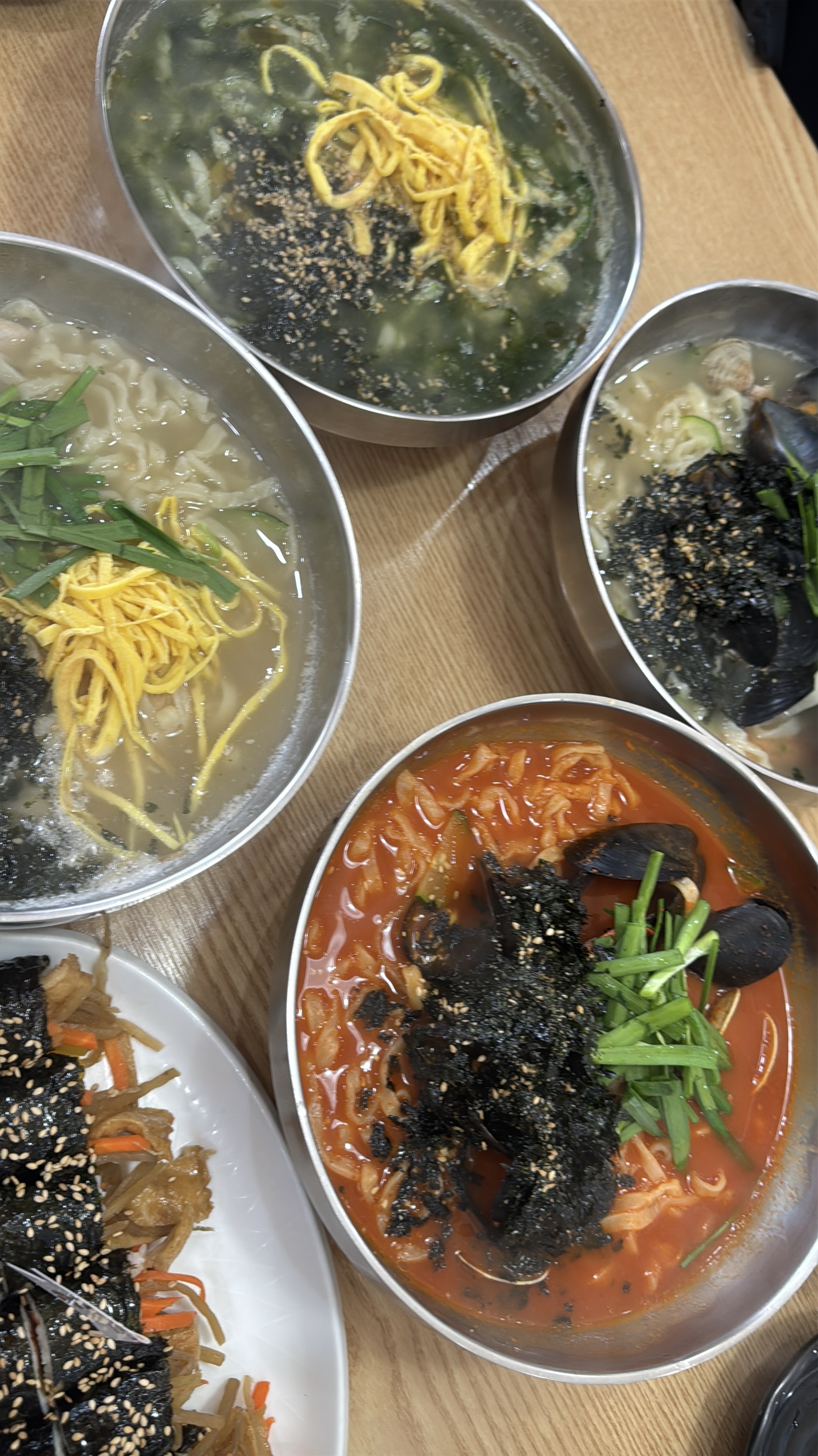여기다! 칼국수 찐맛집이네요! 뭘 먹을까 돌아다니다가 줄서있길래 맛집인가보다 싶어서 줄서서 들어왔는데 역시.. 줄서는 이유가 있었네요👍 매생이 칼국수는 처음 먹어보는데 맛있어요!! 김밥도 고소하니 뭐 많이 안들어간거같은데도 맛있어요 또 올만한 곳입니다🫶🏻