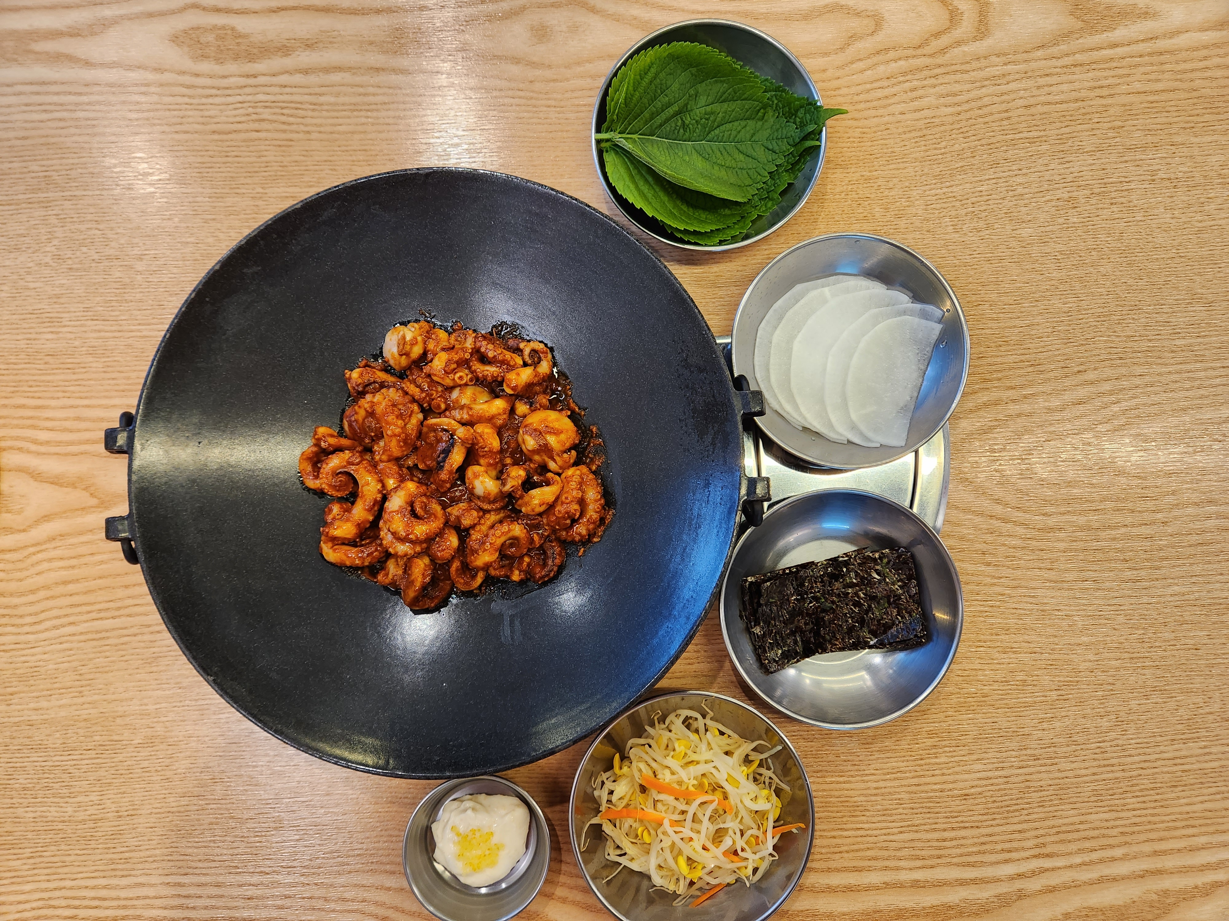 깔끔한 매장, 친절한 직원분들 덕분에 맛있게 잘 먹고갑니다. 주변에 쭈꾸미 집이 많아서 어디갈까 고민했는데, 다음부터는 그냥 와야겠어요~ 깻잎에 김이랑 쌈무 같이 먹고 볶음밥 먹으니까 너무너무 맛있어요ㅠㅠ 셀프바에 가니까 다른 반찬도 많은데 사진을 못 찍었네요ㅠㅠ 점심특선 만원은 두시까지라고 하니 많이 이용하세용~ 사장님 건강하시고 대박나세요!