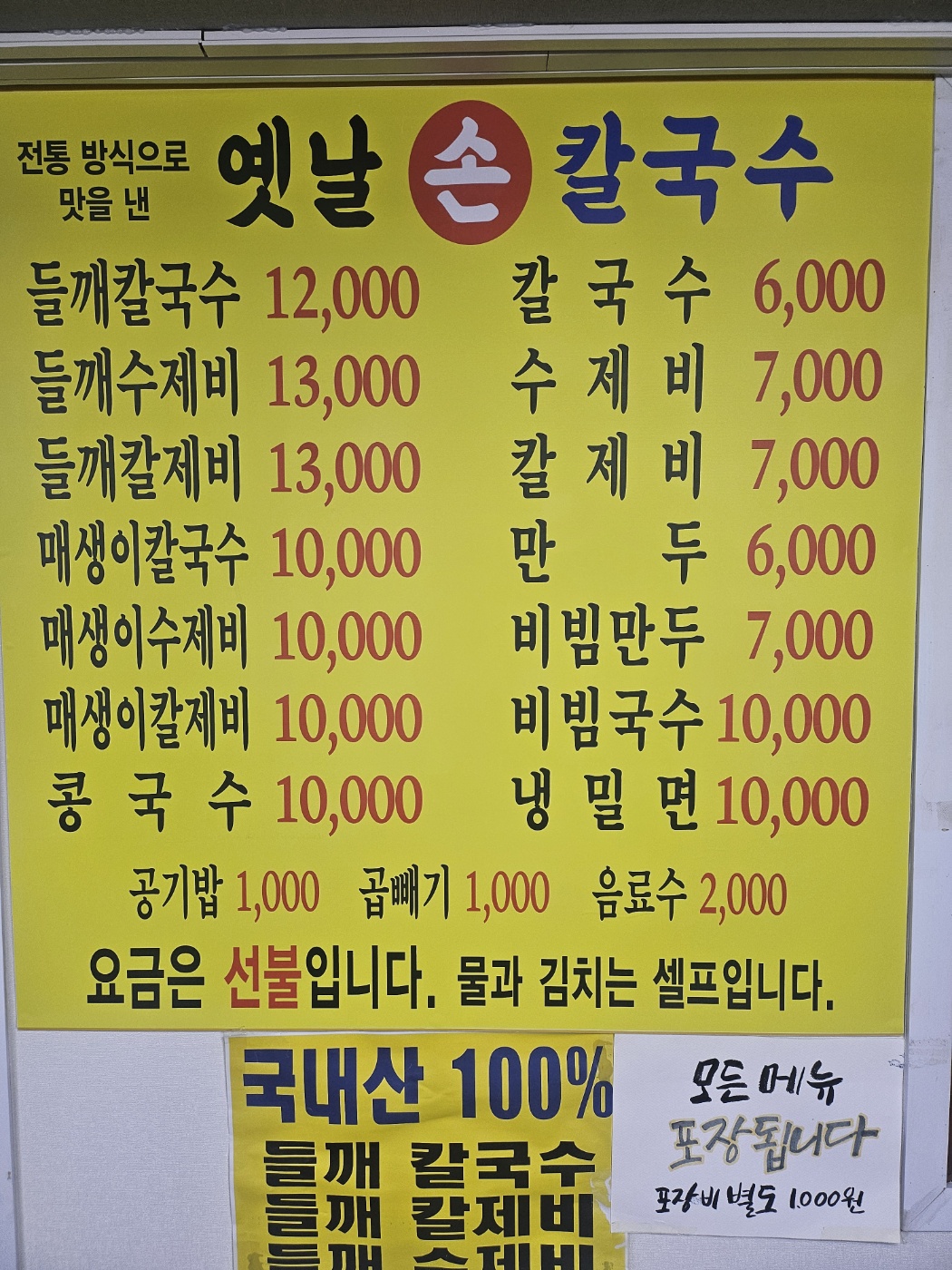 - 들깨칼국수(국내산) 12,000원