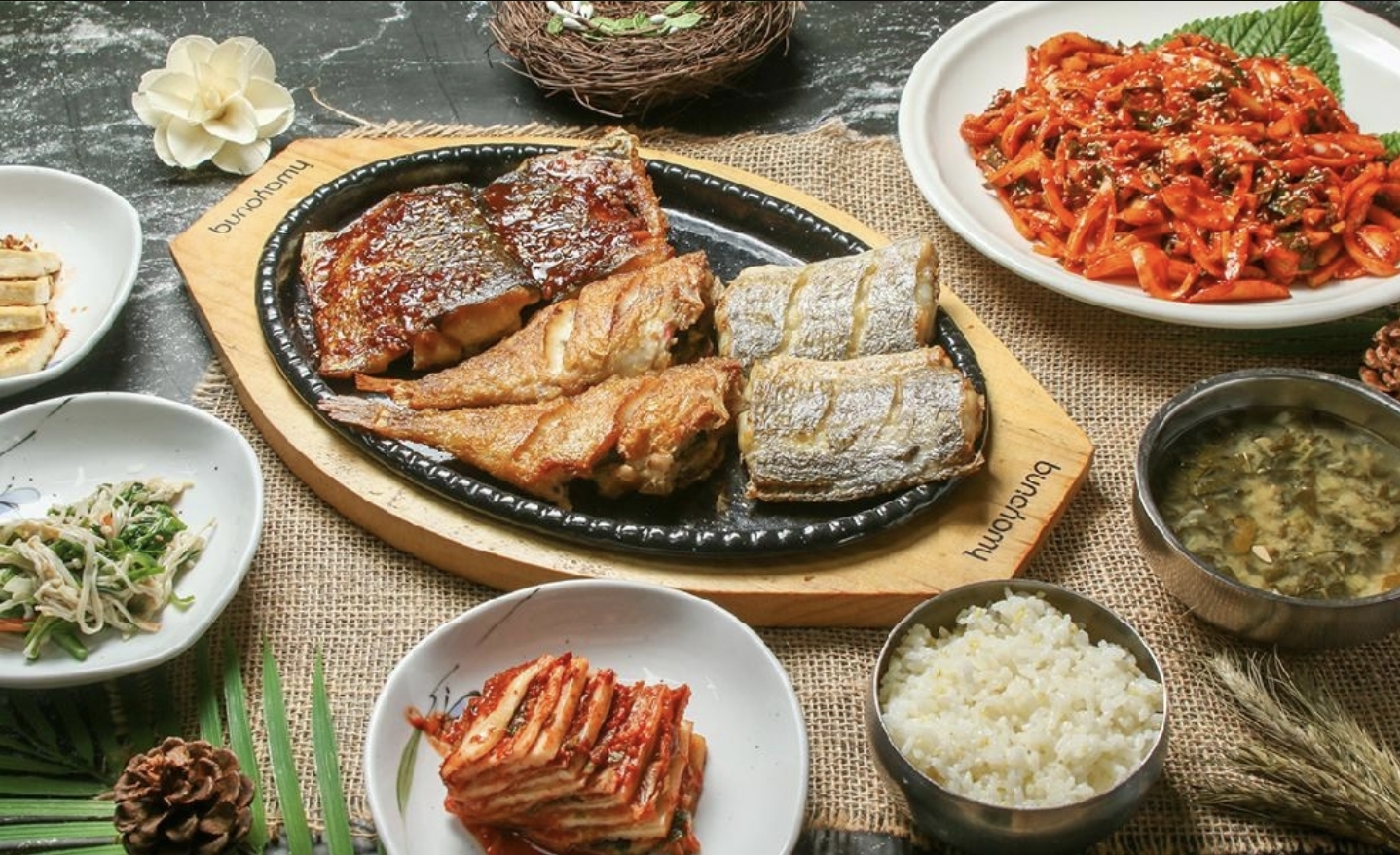 생선구이정식으로 다양한 생선을 맛 볼 수 있음. 일반적인 생선구이집은 고등어/조기/갈치 정도일텐데, 볼락/갈치/민어새끼(?) 조합의 새로운 생선이 포함됨. 정식 메뉴에 포함된 오징어초무침도 손맛 좋으시고. ※ 3인분 일 때보다 2인분 일 때가 보다 알차고 가성비 좋은 듯.
