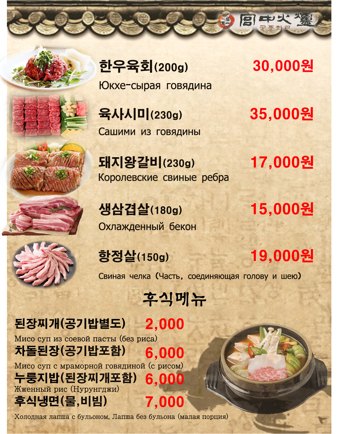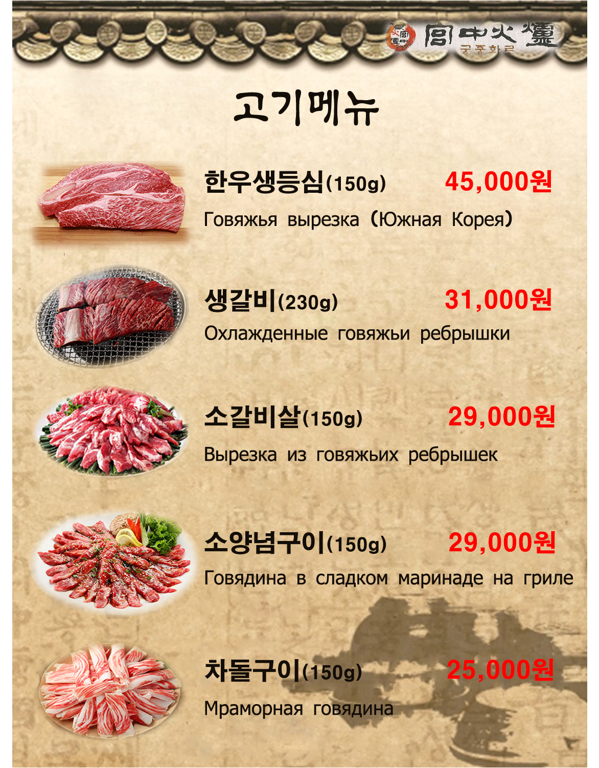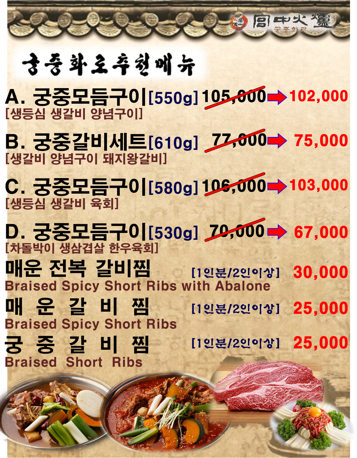 - A세트 궁중 모듬구이 105,000원