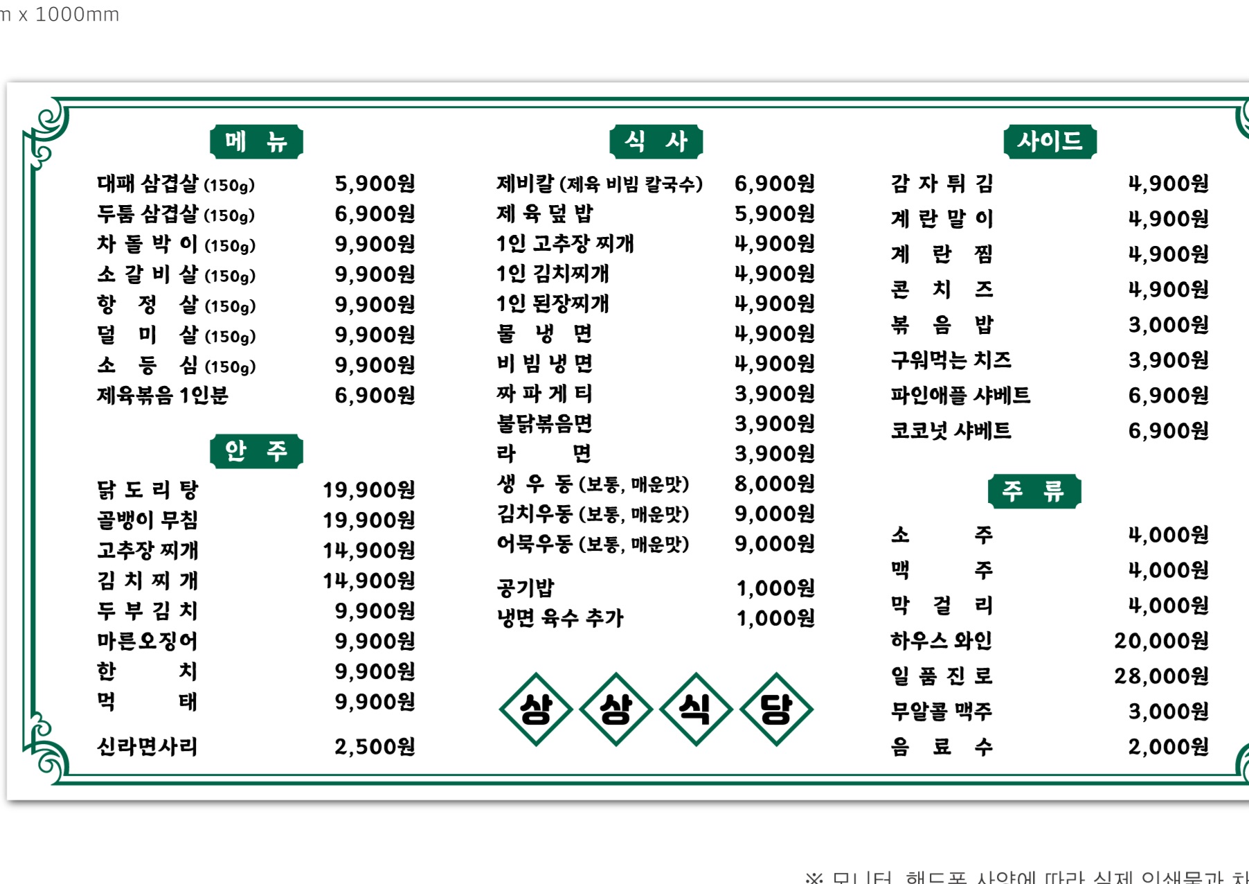 - 두툼삼겹살 6,900원