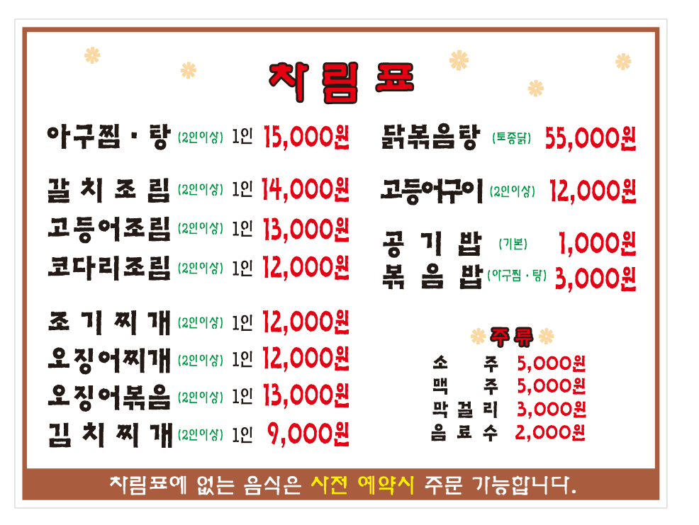 • 아구찜·탕 15,000원