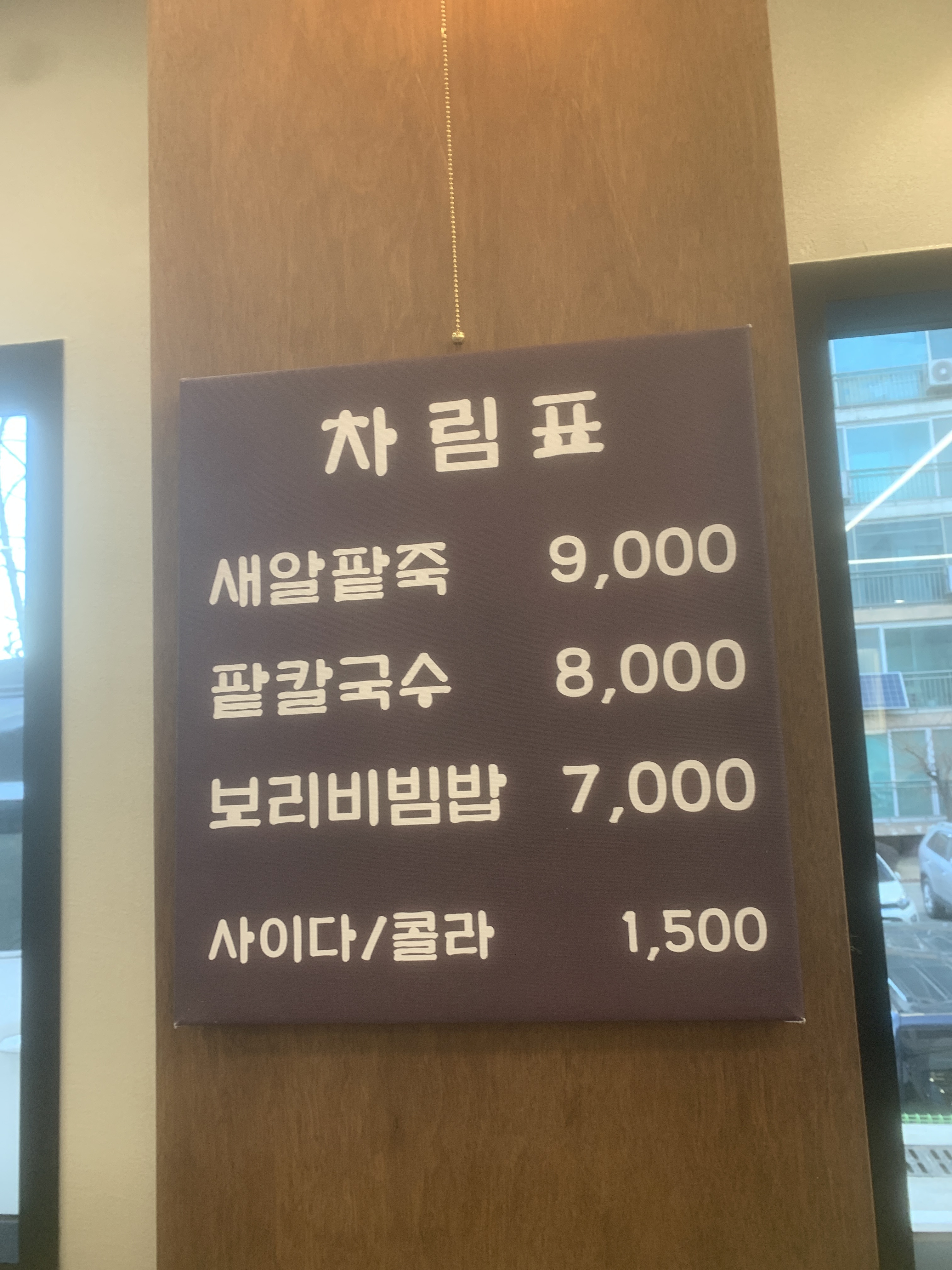 • 팥칼국수(보리비빔밥) 9,000원
