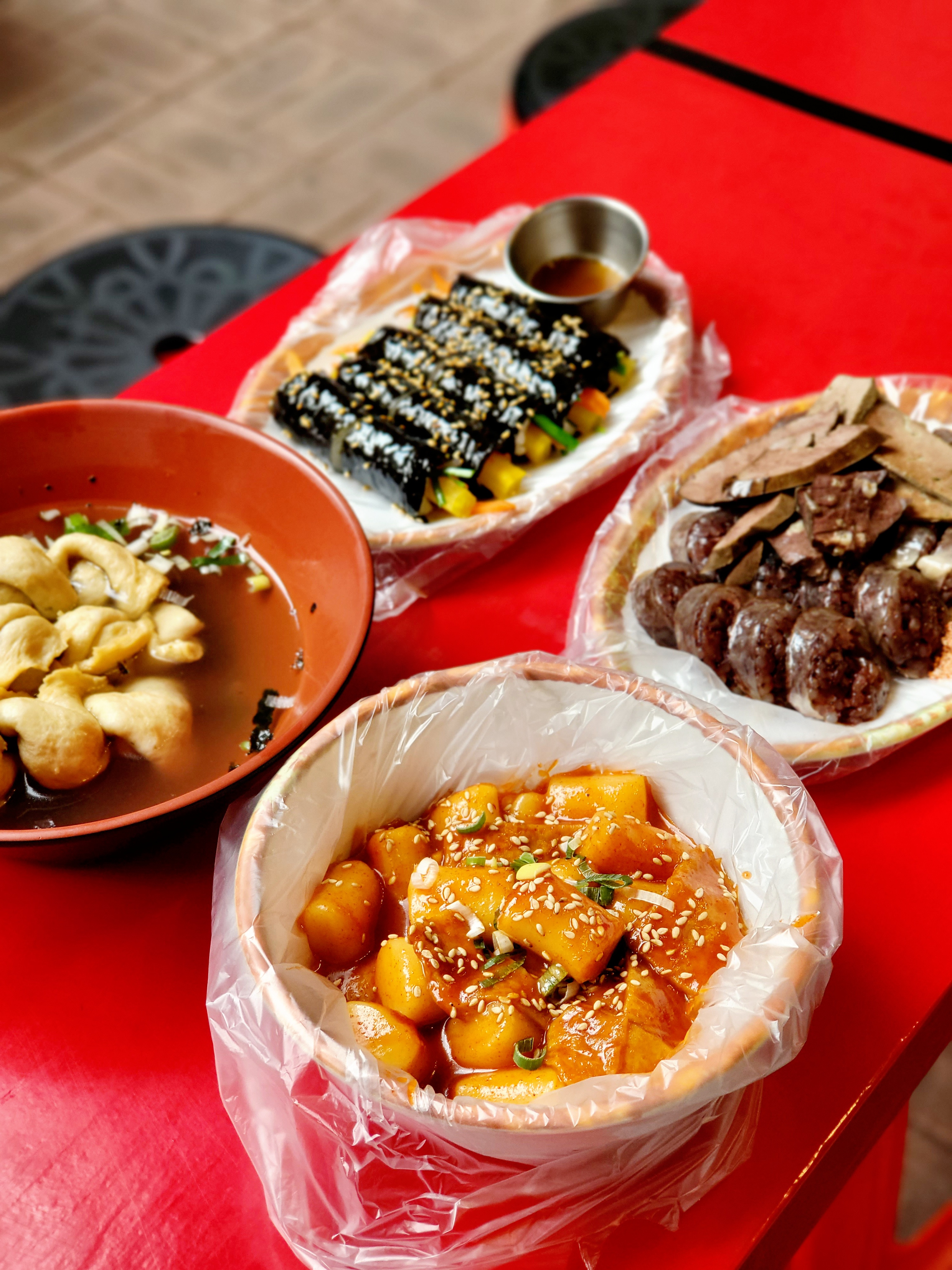 저희는 떡볶이, 오뎅, 김밥, 순대를 주문했어요~ 떡볶이는 떡이 쫄깃쫄깃하면서 한입에 먹기 좋은 크기라 먹기에 편해서 좋았어요 소스는 학교 앞에서 많이 사먹었던 단짠의 떡볶이 소스맛이라 자극적이지 않아서 계속 먹게 되는 중독적인 맛이었어요 추억도 떠오르면서 부담없이 즐길 수 있어 좋았어요 순대와 내장들은 퍽퍽하지 않고 야들야들하게 잘 삶으셔서 부드럽게 먹을 수 있었어요 그리고 떡볶이 소스에 찍어먹으니 조합이 더 좋았어요 꼬마김밥은 한입에 쏙 들어갈 크기에 당근, 시금치, 단무지만 들어갔는데도 참기름 향이 은은하게 올라오면서 고소했어요~화려하진 않지만 계속 손이 가는 맛이었어요 ​어묵은 식감이 탱글하면서도 맛있었어요~ 정갈하면서도 깔끔하게 분식을 먹을 수 있어 다음에도 또 방문하고 싶을만큼 만족했어요 ​