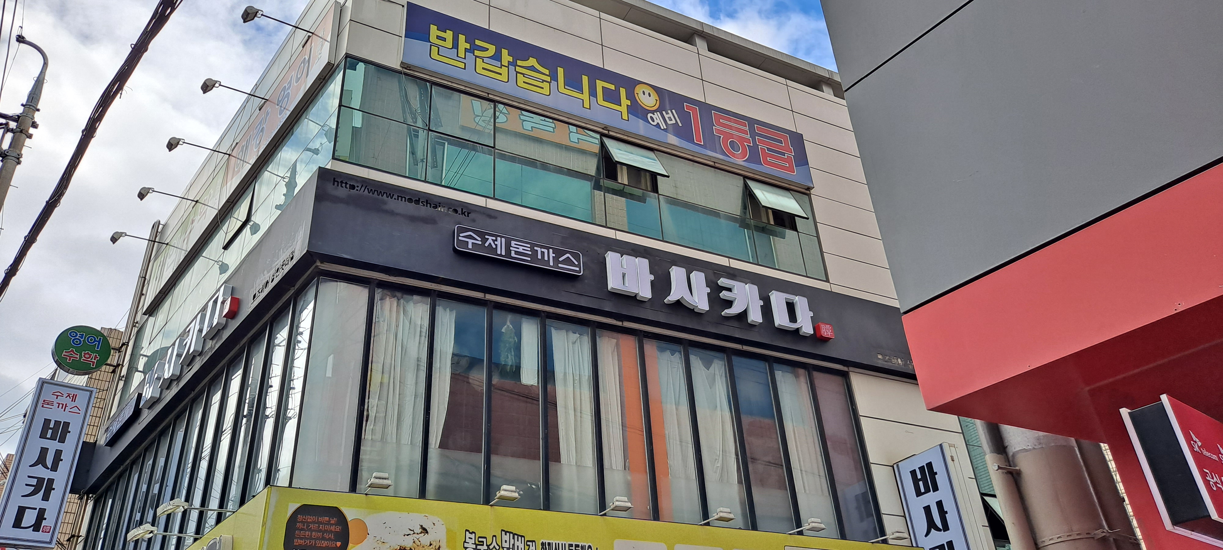 미꾸와모찌상인네거리 지나갈때마다 직관적인 돈까스집 간판 두집이 보임. 가보고 싶던 가게 중 한 곳! 이름대로 바사카니 맛있음! 아이랑 둘다 깨끗하게 클리어! 가격도 착하고 친절하심👍🏻