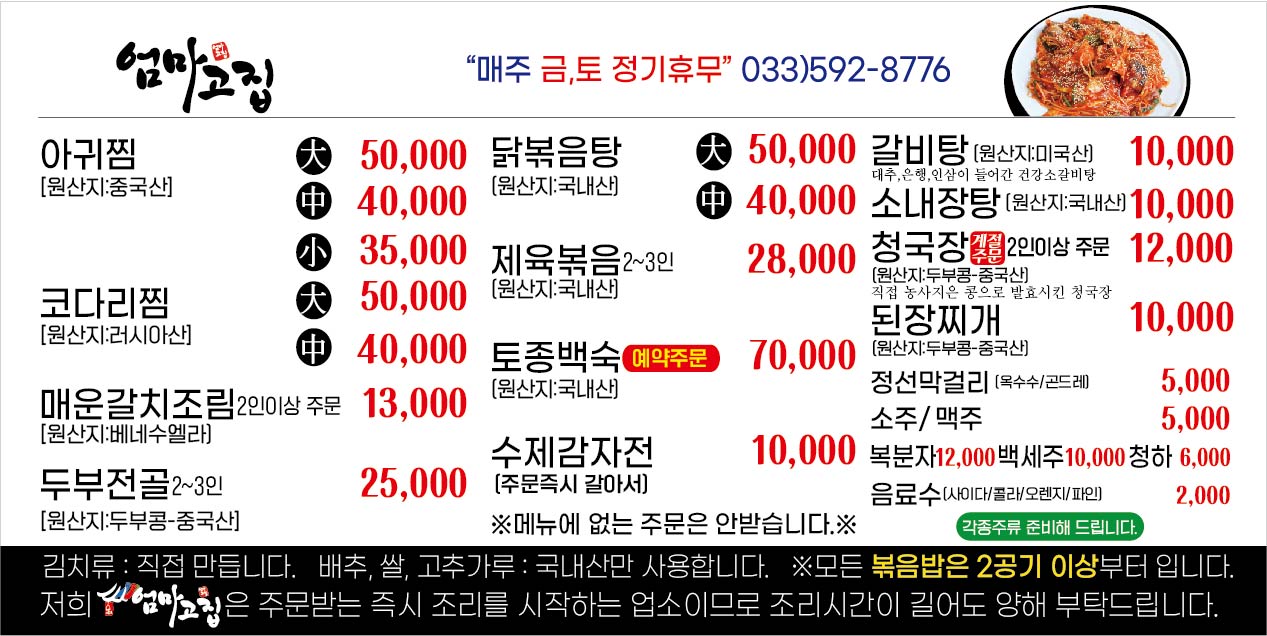 - 코다리찜 40,000원