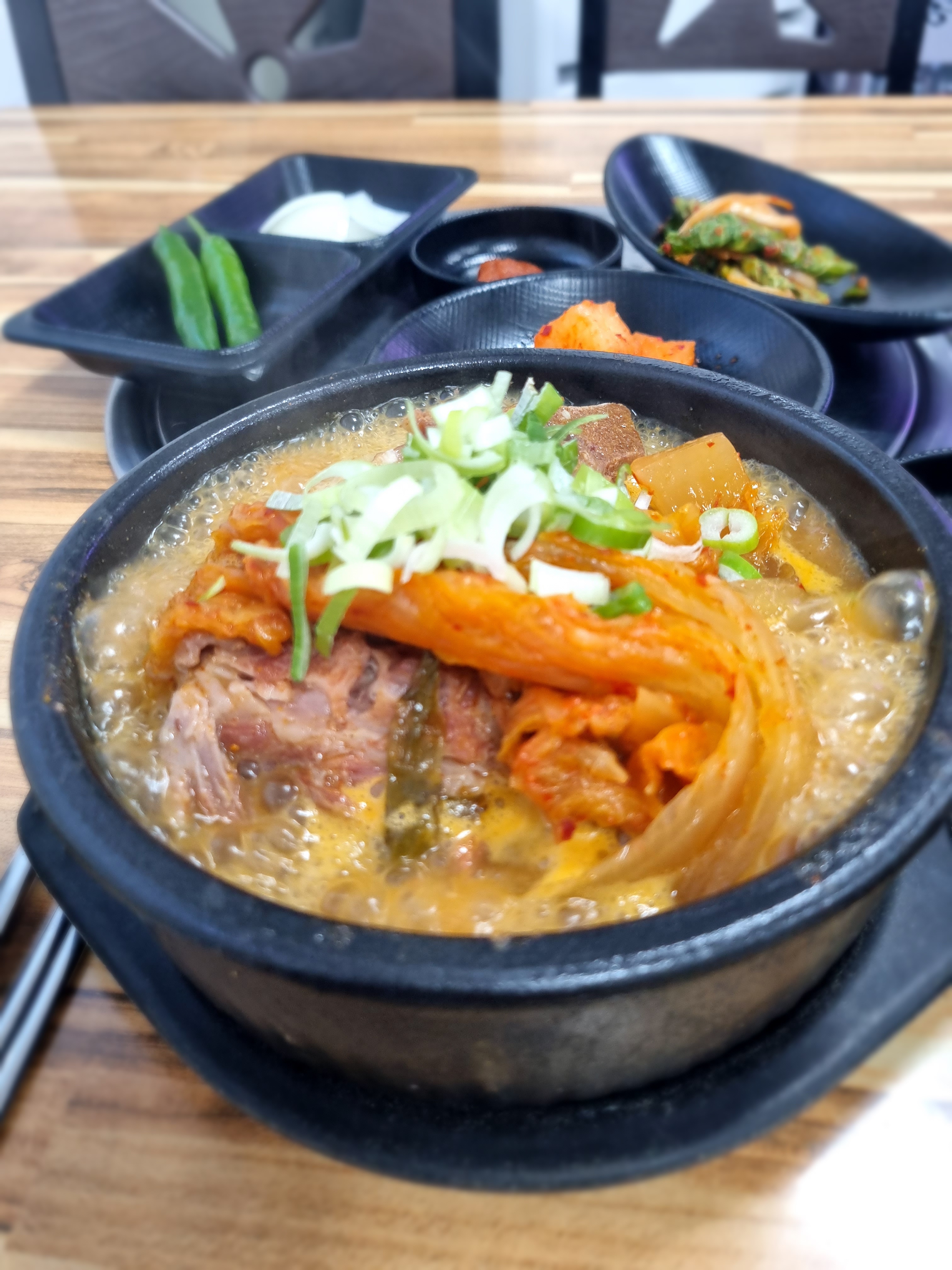 기본으로 당면, 수제비, 우거지가 푸짐하게 들어가 있어서 추가 안 해도 충분히 넉넉해요. 특히 우거지가 정말 듬뿍 들어가 있어서 국물이 깊고 구수했어요. 통뼈는 이름처럼 큼직하고 살이 통통하게 붙어 있었는데, 젓가락으로 툭 건드리면 살이 스르르 분리될 정도로 부드러웠어요. 아이들도 진짜 잘 먹더라고요. 매콤하긴 하지만 자극적이지 않고 깊은 맛이라 가족 외식으로 딱이에요