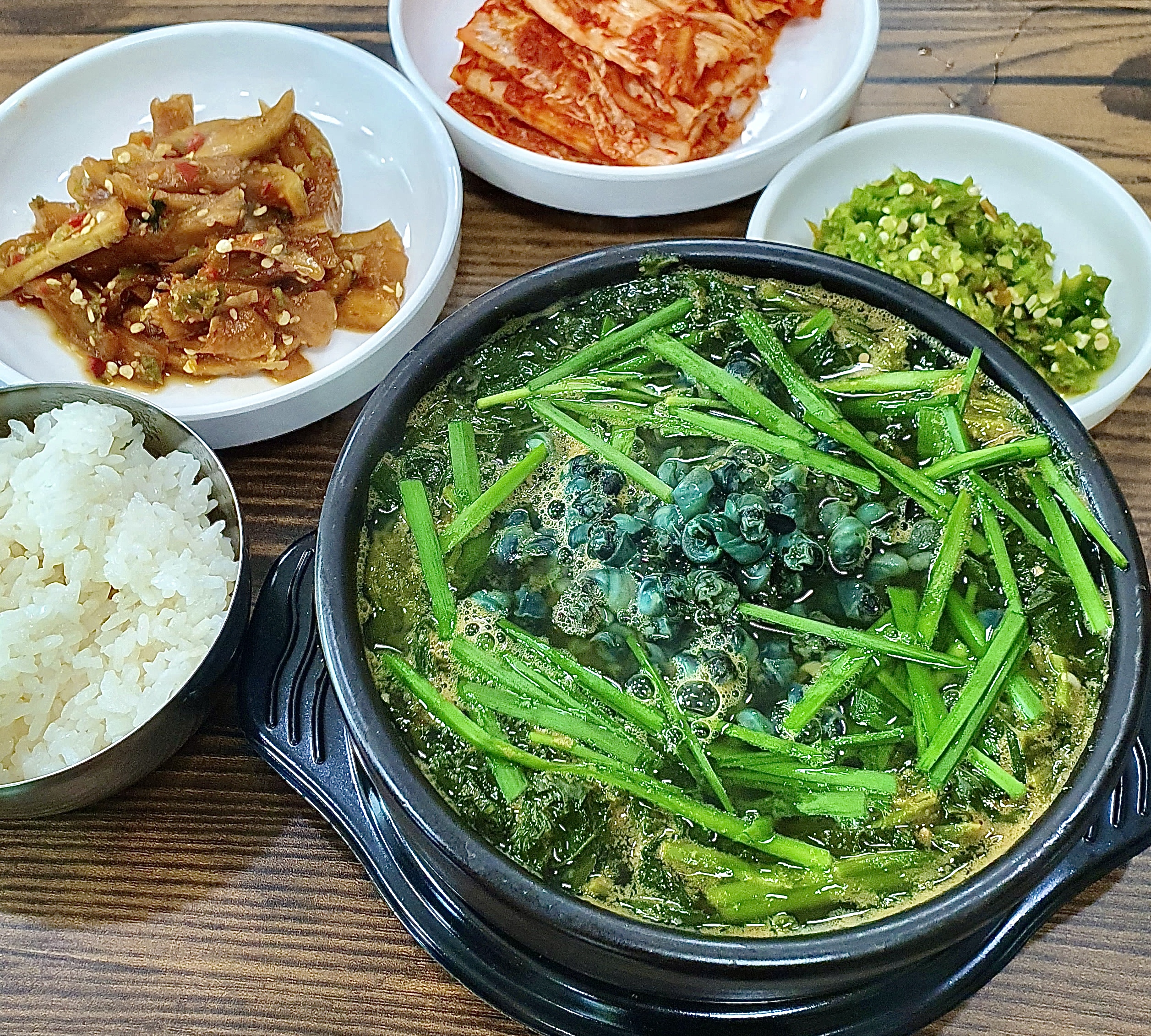푸르메95토요일 1시반쯤 도착했는데 자리 거의 만석이였어요 다행히 웨이팅없이 먹을수있었음 올갱이 양 많고 국물 단백하니 맛나요 김치도 깔끔한맛 머무는동안 손님 꾸준히 들어옴