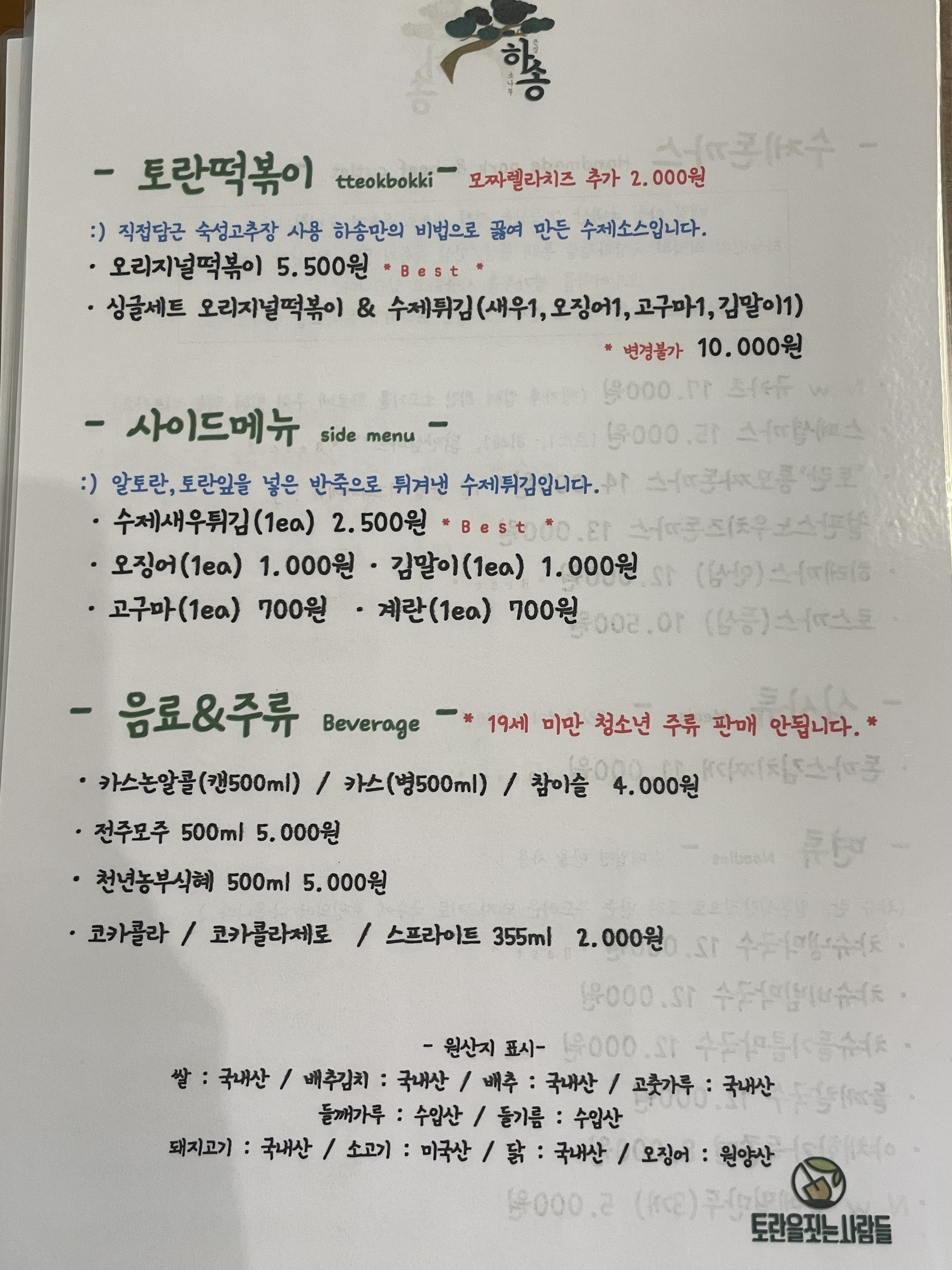 - 토란떡볶이(오리지널) 7,000원