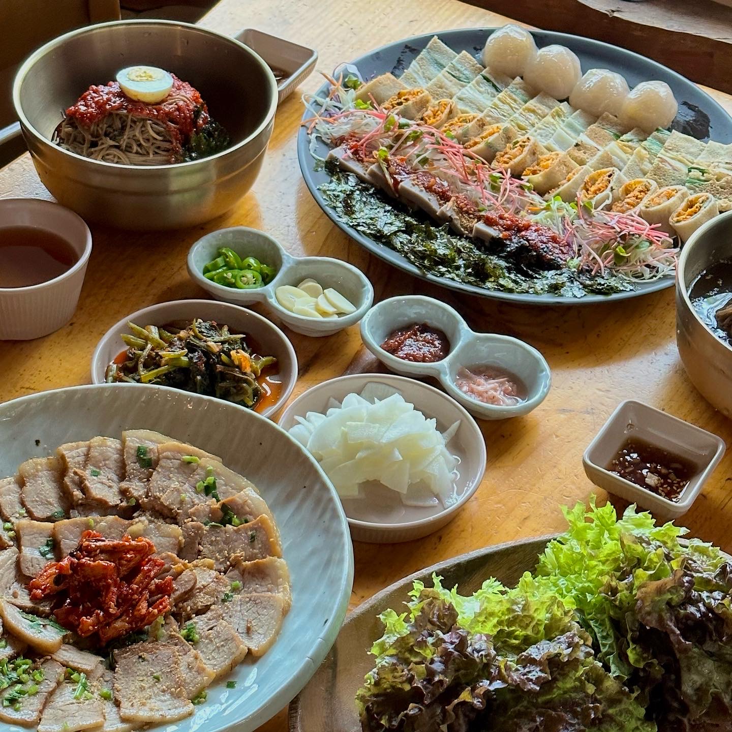화니0923가게 내부 분위기가 일단 너무 좋고 음식도 깔끔하고 맛있어요 메밀국수는 면이 부드러워서 가위가 필요없을 정도고 메밀 모듬은 골라먹는 재미가 있고 여러 종류 먹을 수 있어서 대만족입니다~! 특히 메밀묵이 식감이 조금 독특한데 개인적으로 묵 개별메뉴를 먹어보고 싶은 맛이었어요ㅎㅎ 맛도 맛이지만 분위기까지 너무 좋아서 지인에게 추천한다면 풀내음을 봉평 맛집으로 추천하겠슴돠~!