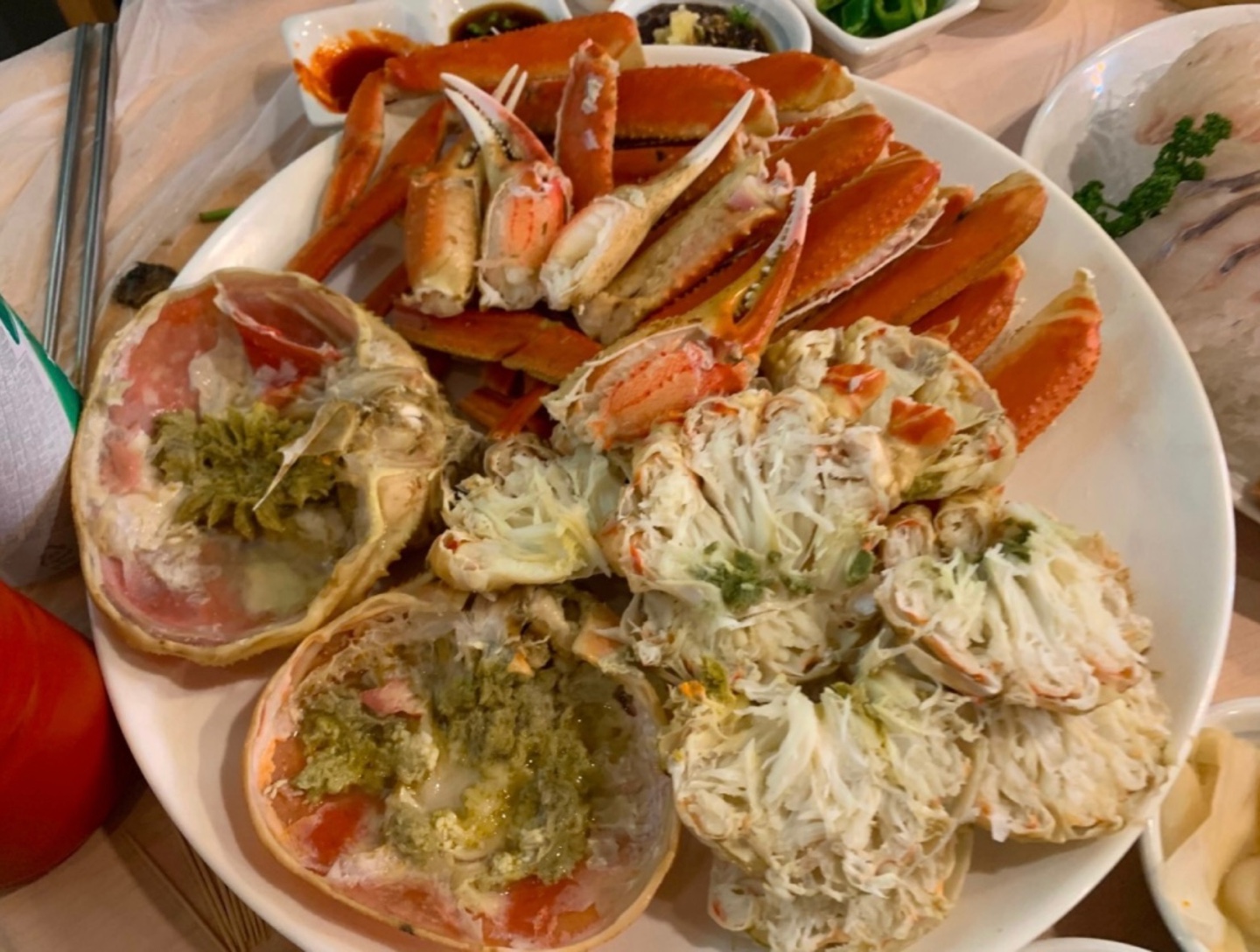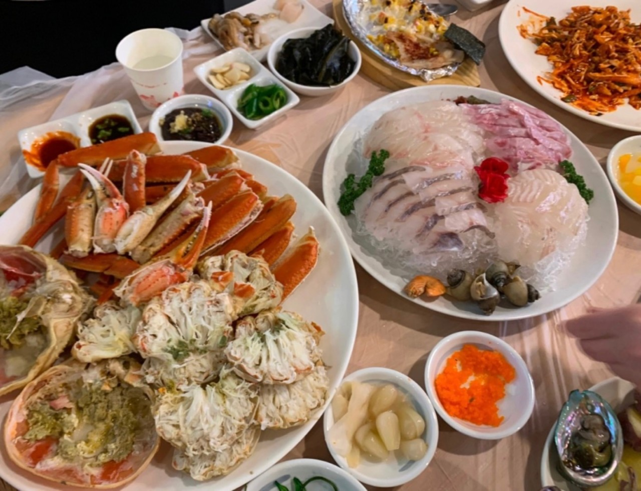 웰컴썸머썸머또간집❤️❤️ 국산대게가 철이래서 주문했습니다~~ 찜비, 상차림비 하나도 없는데 !!!? 스끼다시 너무 잘나와요👍🏻 특히 해산물 감동ㅠㅠ 미역, 떡, 튀김, 생선구이, 물회또는미역국!(날이 추워서 오늘은 미역국이 나왔어용), 날치알김,새우,골뱅이,쭈꾸미, 전복, 해삼,멍게, 전복장 ... 진짜 끝내줘요 항상 친절하신 사장님과 따님분 덕분에 기분좋게 먹고가용~~