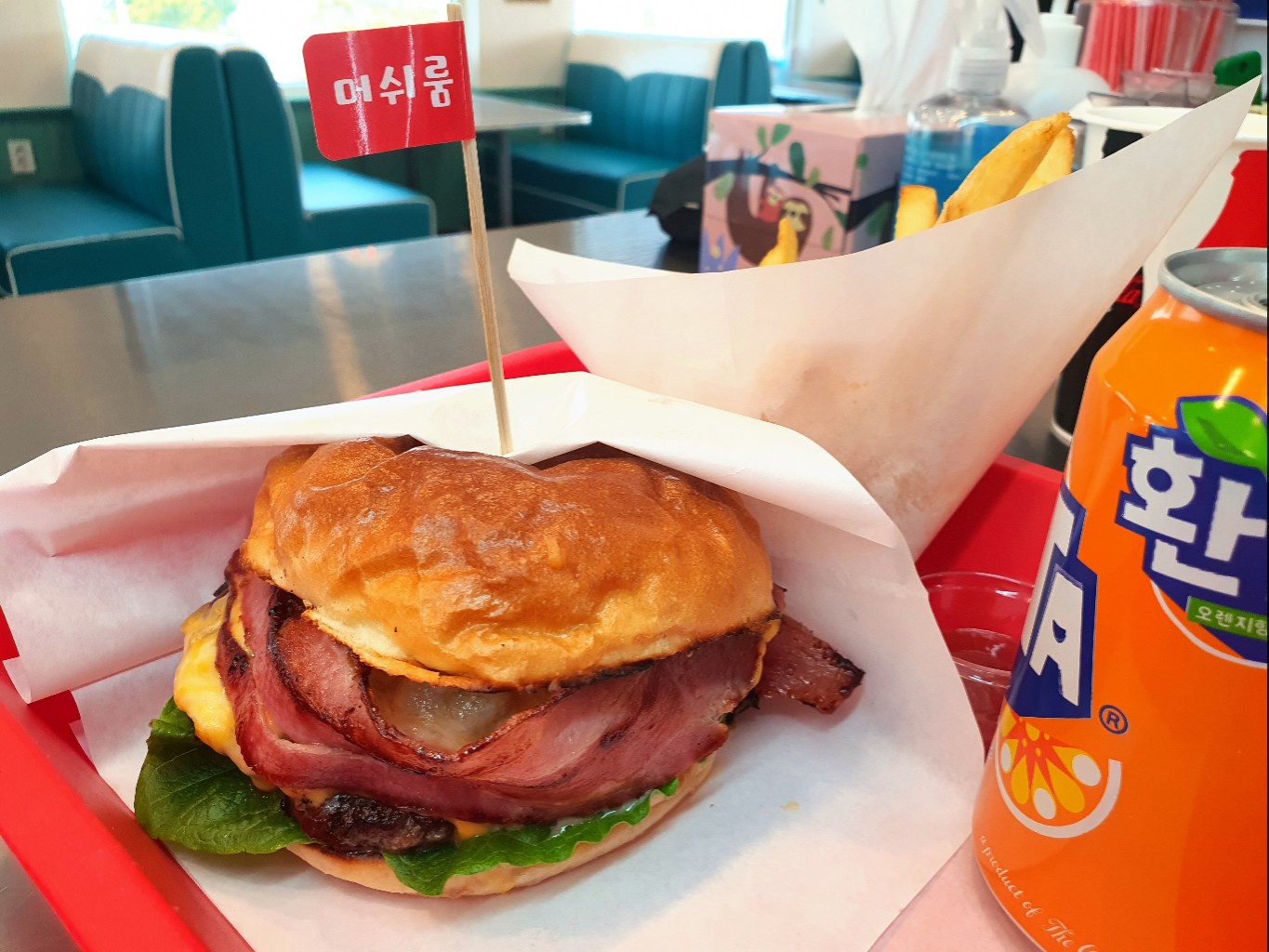 서글픈사랑제가 먹어본중에 가장 맛있었어요 주문즉시 만드는 패티와 빵 육즙 지대로 터지는 저희 오고 뒤에분들 바로 숄드아웃 150개 한정판매래요 참 주문예약은 현장 음식섭취 안되요 꼼수 부리시면 안되요. ㅎ ㅎ ㅎ