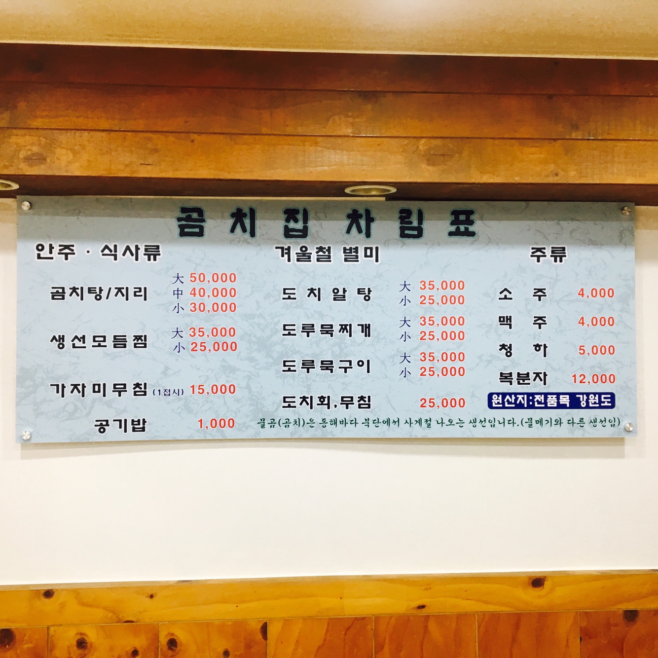 - 곰치탕/지리 中 45,000원