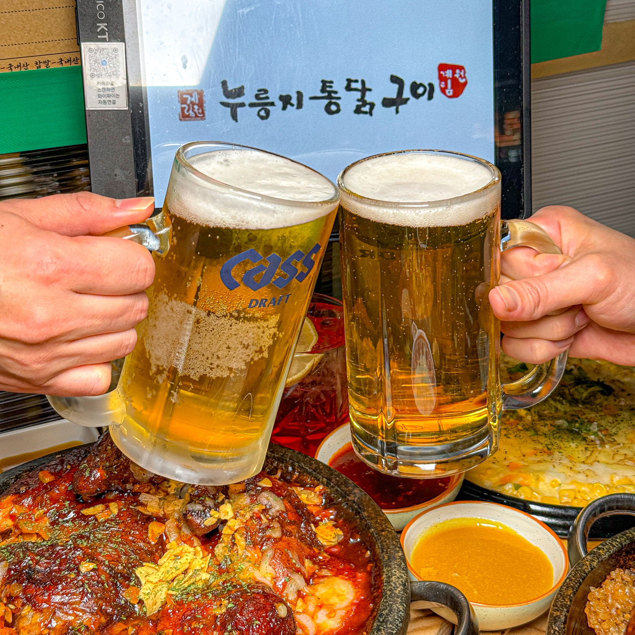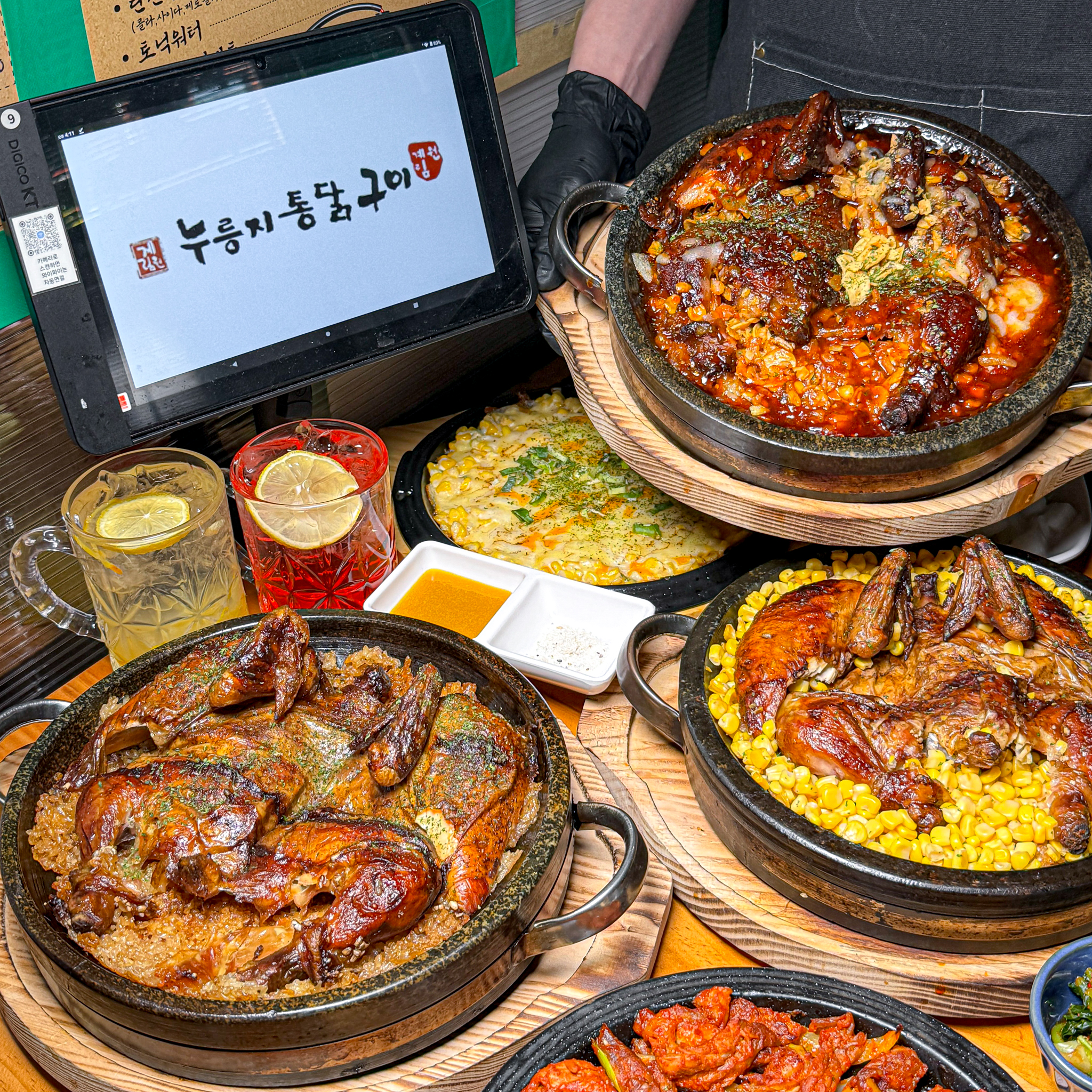 끼유기좋아누룽지통닭이 생각나서 왔어요 시원한 맥주랑 마시면 극락가는 맛 매콤불 누릉지 통닭은 은근 매콤하니 주의하세요 오리지날 누릉지통닭은 담백하니 입에 촵촵 셀프바에 열무김치까지 안먹어 본 분들은 진짜 궁금하실듯해요 매장도 넓고 테이블도 많고 직원분들도 친절하셔서 기분좋은 불금 보내고 왔어요