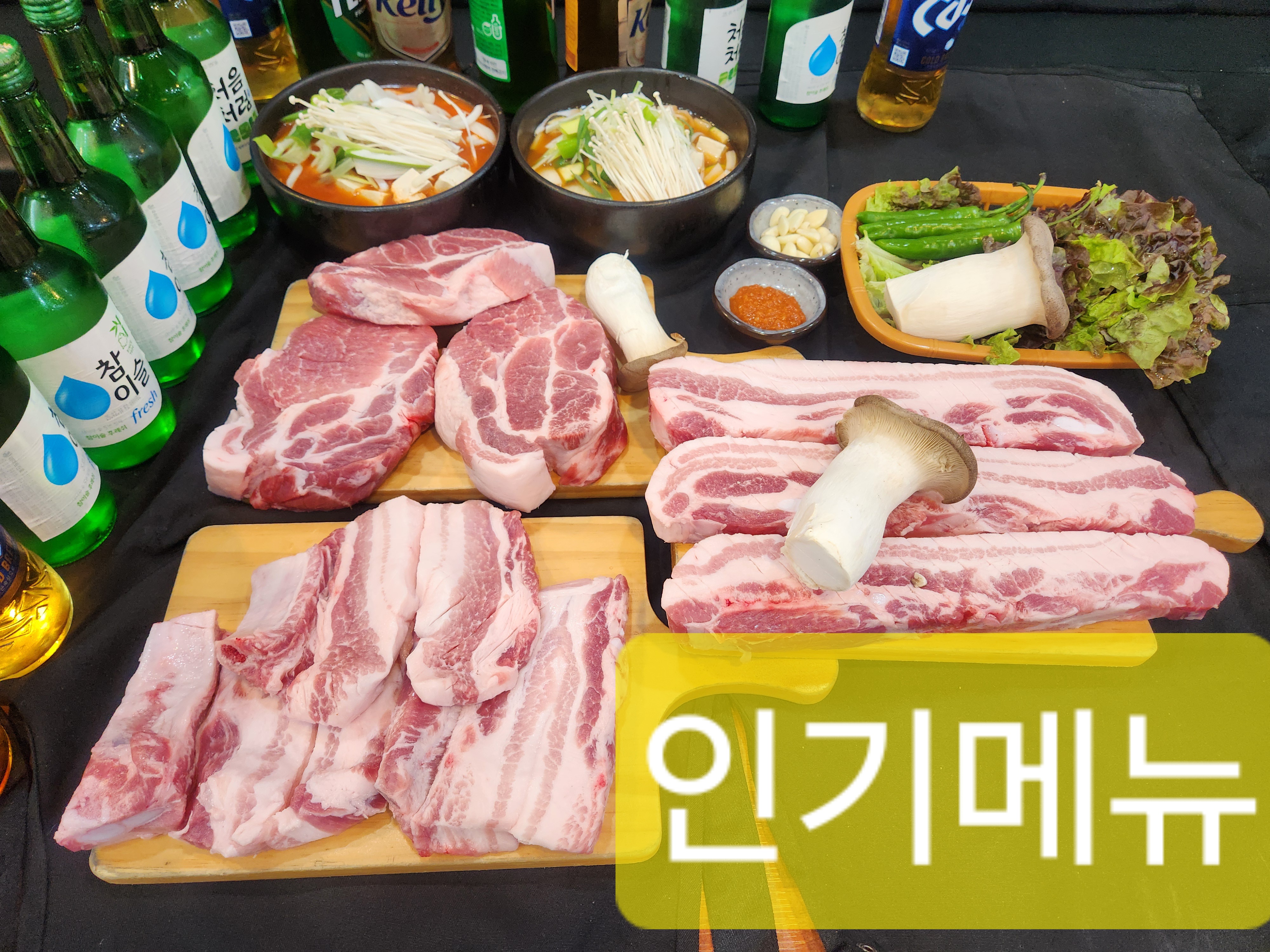 • (4인)삼겹살350+목살350+찌개 65,000원