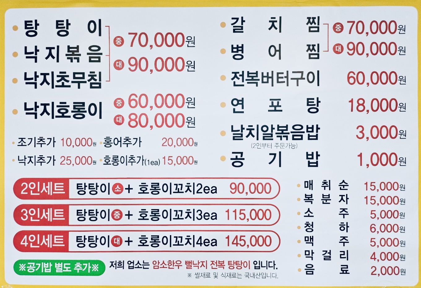 - 낙지볶음(중) 70,000원
