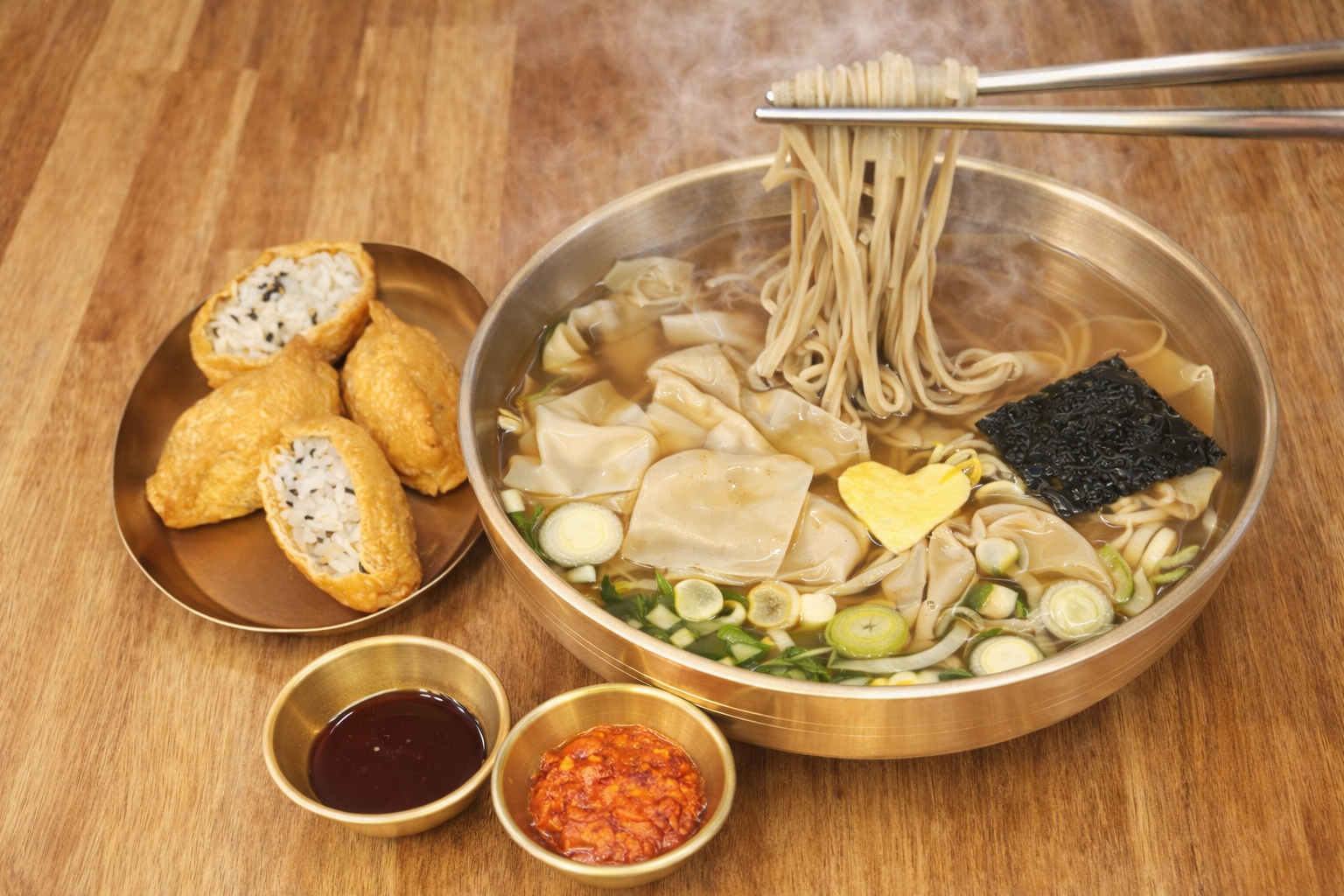 ✅️완당+냉소바(반판)&유부초밥4개 📌중소벤처기업부 인증 백년가게 📌식약처 인증 위생등급 매우우수 음식점 📌행정안전부 선정 착한가격업소 📌안심식당 인정 📌부산 장인 선정 ✔️46여년의 역사가 말해주듯이 사장님의 열정과 정성과 집념이 고스란히 스며들어서 그 빛을 발하는 가게입니다‼️ 부산에 나이드신 토박이 분들은 완당이 부산의 향토음식이란걸 알고 있지만, 요즘 젊은분들에겐 생소한 음식이지요. 만두와 비슷하게 생겼지만, 좀 다른 면이 있어요. 메밀을 자가제면으로 속이 훤히 보이는 0.3mm 정도의 아주 얇게 만든 완당피에 소고기 소가 들어가고 나풀나풀 거리면서 목넘김이 아주 부드럽게 느껴지는 특별한 음식입니다. 높은 장인의 기술이 뒷받침되어야 만들 수 있어요. 한번 드셔보시면 왜 특별한 음식이면서 맛있는지 알아요👍