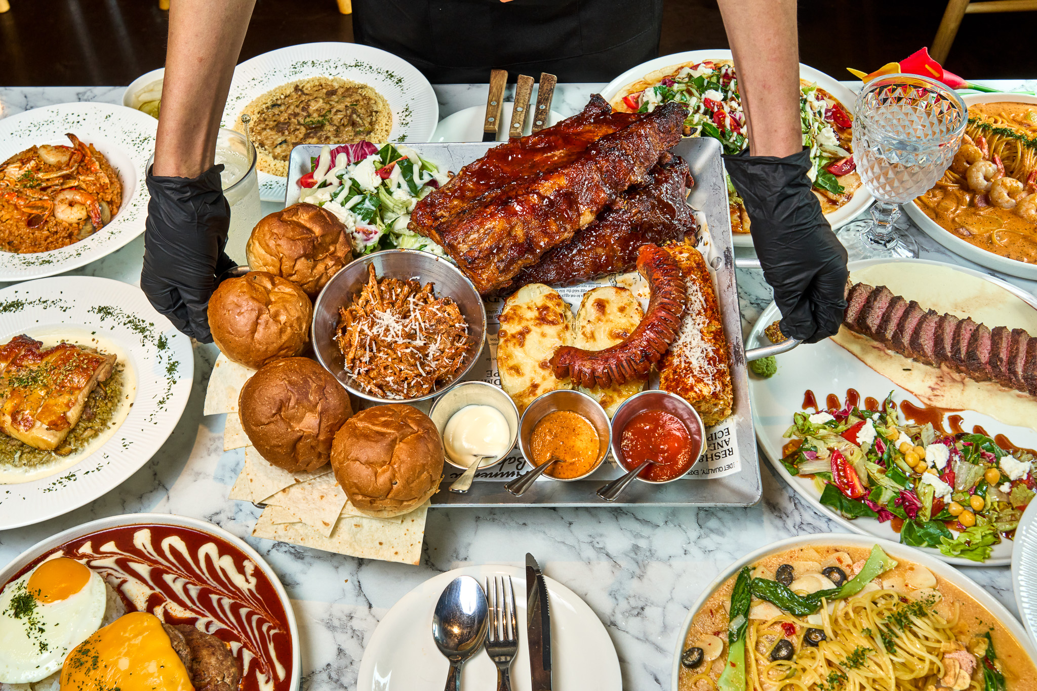 s두진s8여자2명이서 먹기엔 양이 진짜많앗습니다. 2층넓고 단체고객 받기에 편해보이고 인테리어독특..데이트장소로 도 추천할만한 곳 입니다. 식전으로 단호박크림스프 나와서 먹고, 네이버예약손님한에 샐러드..특히 방울토마토 맛잇습니다~ BBQ플레이트 고기도 투명위생장갑주시 면 장갑끼고 뼈 발라내기 수월합니다. 간은 좀 쎈편입니다 계산할때 여자사장님? 여자직원분? 열정적이고 친절하십니다