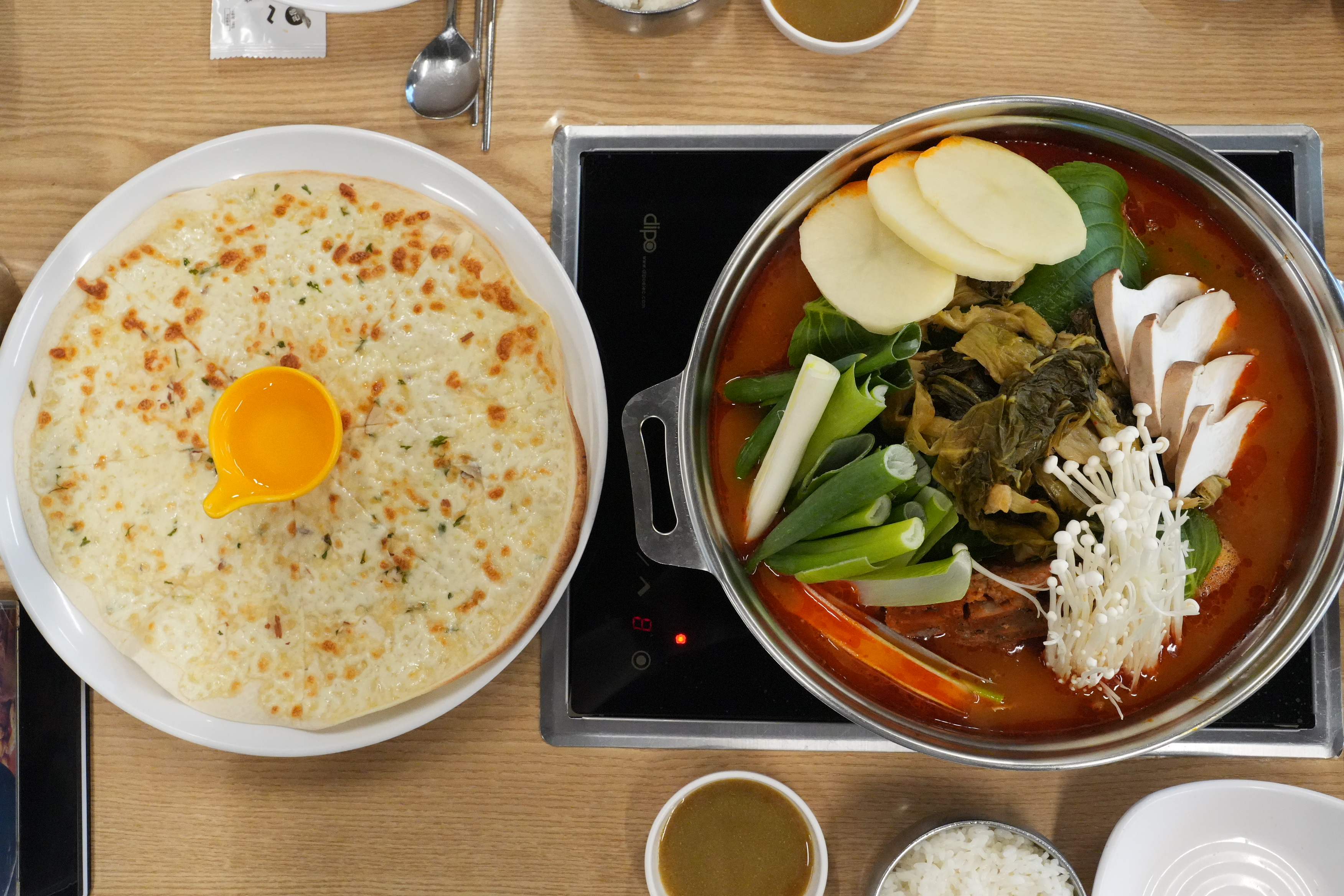 JH v중 주문했는데 피자도 나오고 얼큰하고 깔끔한 국물에 등뼈가 푹 삶아져서 고기 부드럽게 발라지고 잡내 없이 담백했어요~ 우거지도 넉넉하게 들어가 국물 맛이 깊었습니다👍 양도 푸짐해서 3~4명이 먹기 충분할거 같아요~ 직원분들도 친절하고 매장도 깔끔해요 아이 놀이방도 있고 간식도 있어서 아이 데리고 오기도 좋아요🤗재방문 의사 있습니다!