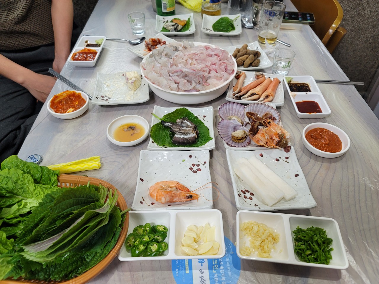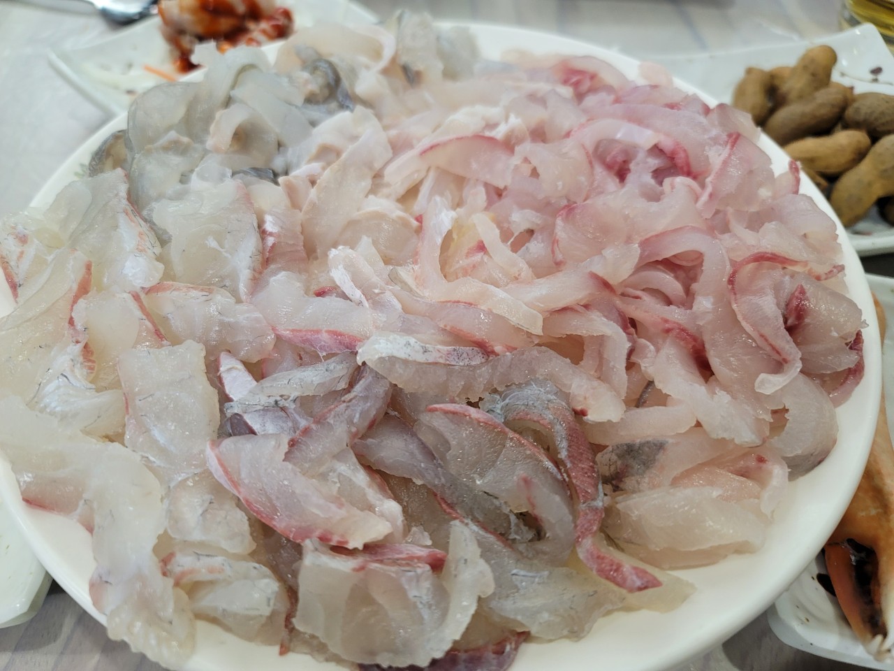 산속의성24.11월 포장 하였음 구성은 회, 쌈채소, 양념 정도 만 옴(스끼다시 포장없음) 1. 기존 대,중,소(4만) -> 특대,대,중(6만) 으로 바뀜(소 사이즈 삭제) 어쩔수없이 둘이서 중자 (6만원)을 시켰음. 양적당. 사실상 소사이즈 인듯 매장에서 먹는것이 아니므로 포장가격이 더싸거나, 회양이 더많아야하지 않나 라는 아쉬움이있음 2. 막썰이 인지라 잔가시가 조금 씹힐수 있는것은 이해하지만 1/4정도는 씹어서 삼키기 거부감이드는 뼈들이 계속 나와 뱉어낸점은 아쉬웠음 3. 회자체는 매우 신선하고 탱글거리고 맛났음 결론은 회자체는 신선하고 맛있다. 포장한정 홀가격이랑 똑같아 가성비가있지는 않다. 재 포장 의사는 없습니다