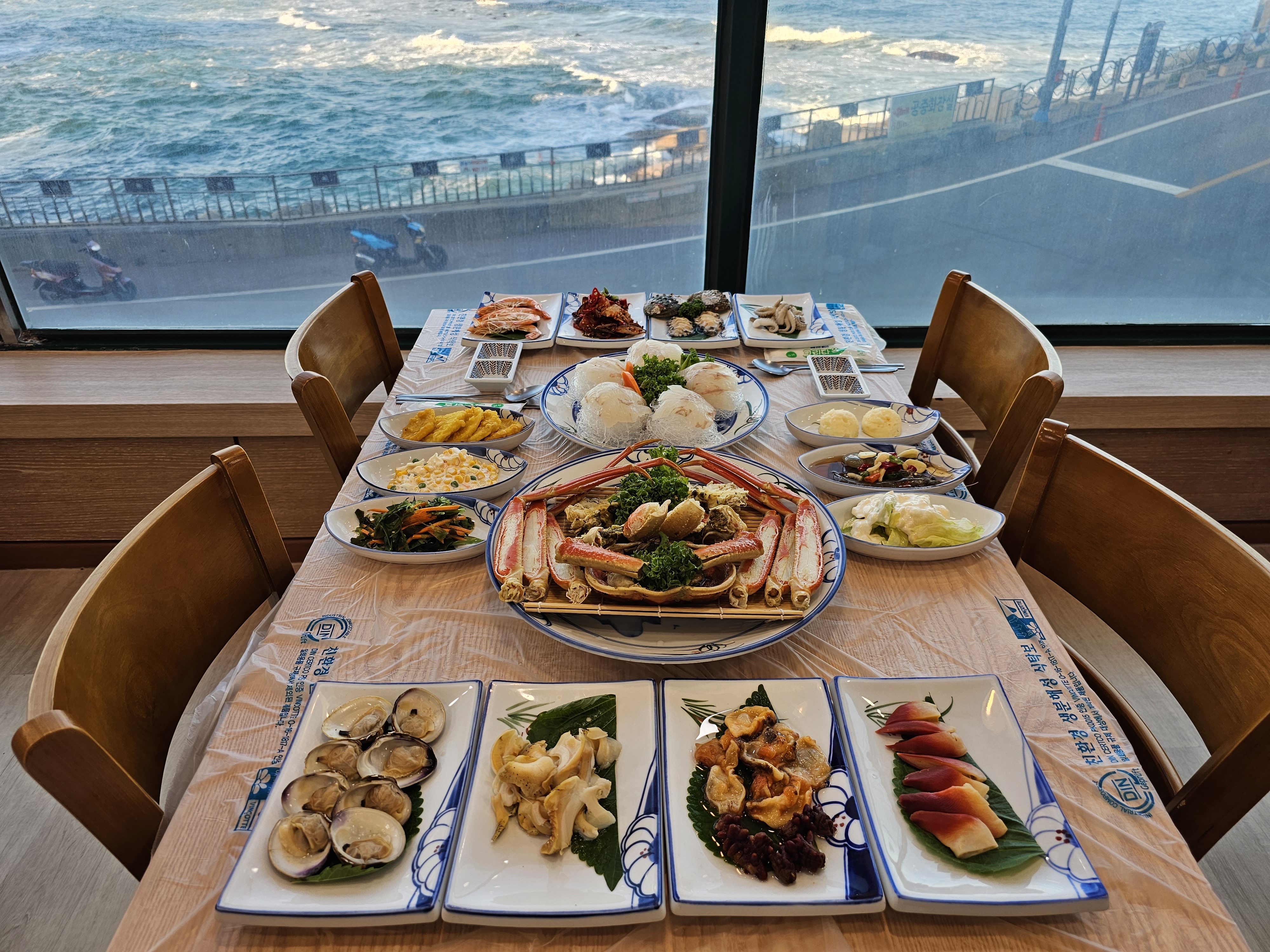 냠냠냠냠냠얌얌얌알뜰대게세트 먹고 왔는데 통창이라 바다가 바로 보여서 뷰도 너무 좋았고 깔끔한 식당이라 좋았어요👍 반찬들도 너무 잘나와서 신선한 해산물 한가득 먹을 수 있었고 광어회는 탱글탱글한게 너무 맛있었어요😄 하이라이트인 대게 한마리는 살이 거의 100%가 차있어서 너무 맛있게 먹었어요🦀🩷 매생이죽이랑 대게볶음밥 그리고 홍게라면까지 배터지게 먹고 왔어요~ 너무 친절하시고 가성비도 좋아서 속초 여행 오시면 꼭 와보시길 추천드려요!!