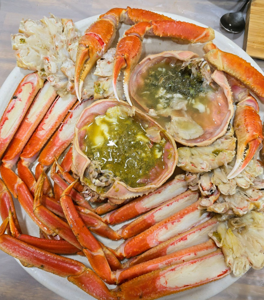 꼬깔95회+대게 2인셋트 예요~ 대게 빼고 음식은 엄청 빨리나와요. 대게는 새로 찌셔서 그런듯요~ 스끼 해산물은 미리 준비해놓으셔서 너무 차가웠어요😮💨 회는 너무 작게 썰어져서 회맛을 느끼기 아쉬었어요ㅠㅠ그래도 사각사각 맛났어요 나온 음식중에 대게가 바로 쪄나와서 그런지 젤 맛났어요! 가격 대비 조금 아쉽긴 하지만..기분 분위기 더해서 잘먹었네요~^^