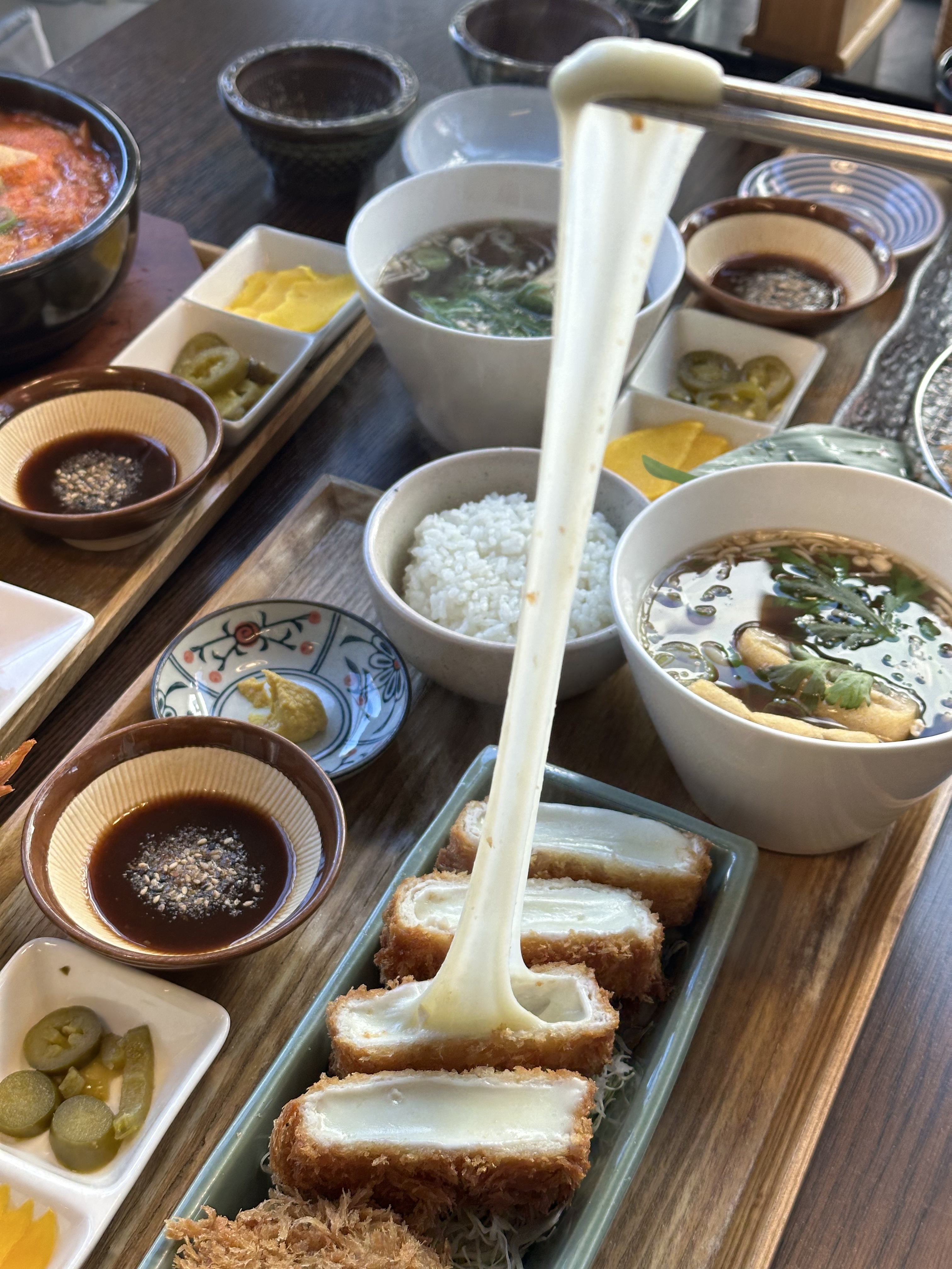 동성로 반월당 근처에 있는 돈까스 맛집 하지메카츠에 다녀왔어요. 반월당데이트 커플세트 주문했는데 다양한 카츠를 한 번에 맛볼 수 있어 좋았습니다. 특히 치즈카츠는 치즈가 쭉 늘어나 고소하고 정말 맛있었어요. 세트에 나온 뚝배기 우동도 양이 넉넉하고 면발이 쫄깃해 만족스러웠습니다. 동성로 데이트나 반월당 근처 식사 맛집으로 추천합니다!