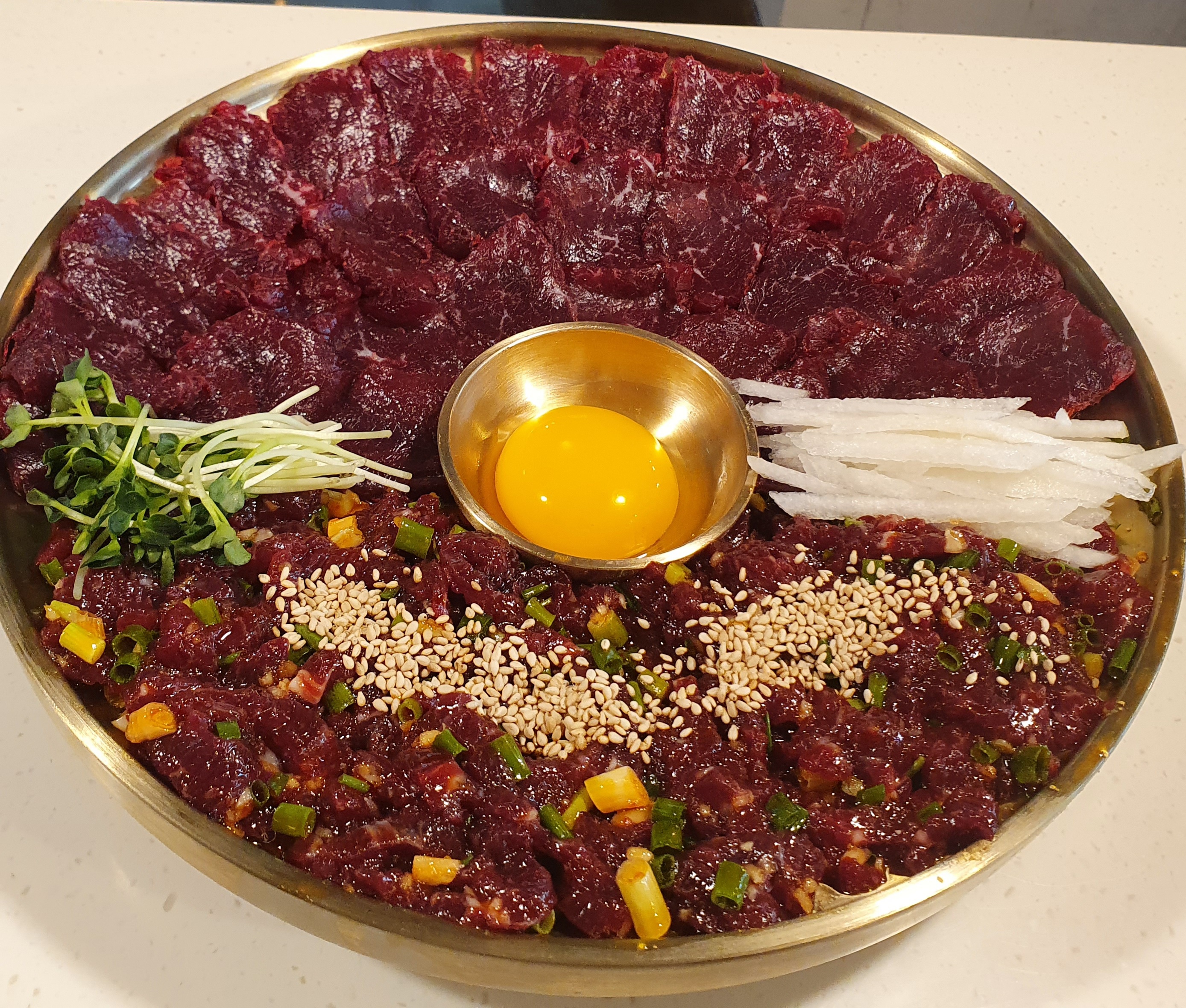 명절 직후 동생이랑 생고기 먹고싶어서 방문했어요! 당일 도축 한우 생고기라 그런지 신선도부터 확실히 달라요ㅎㅎㅎ 생고기 200g + 육회 200g 세트로 먹었는데 둘 다 잡내 하나 없이 깔끔하고 고소해서 너무 만족했어요. 밑반찬도 정갈하게 잘 나오고 맛있어서 전체적인 식사 퀄리티가 높았고, 평일 저녁인데도 자리 거의 꽉 찬 이유 알겠더라구요. 테이블마다 칸막이 있어서 프라이빗하게 먹기 좋은 것도 장점! 대구에서 생고기 찾는 분들께 추천합니다 :)