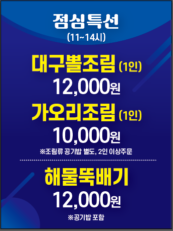 - 해물찜 혹은 해물탕(2인) 35,000원