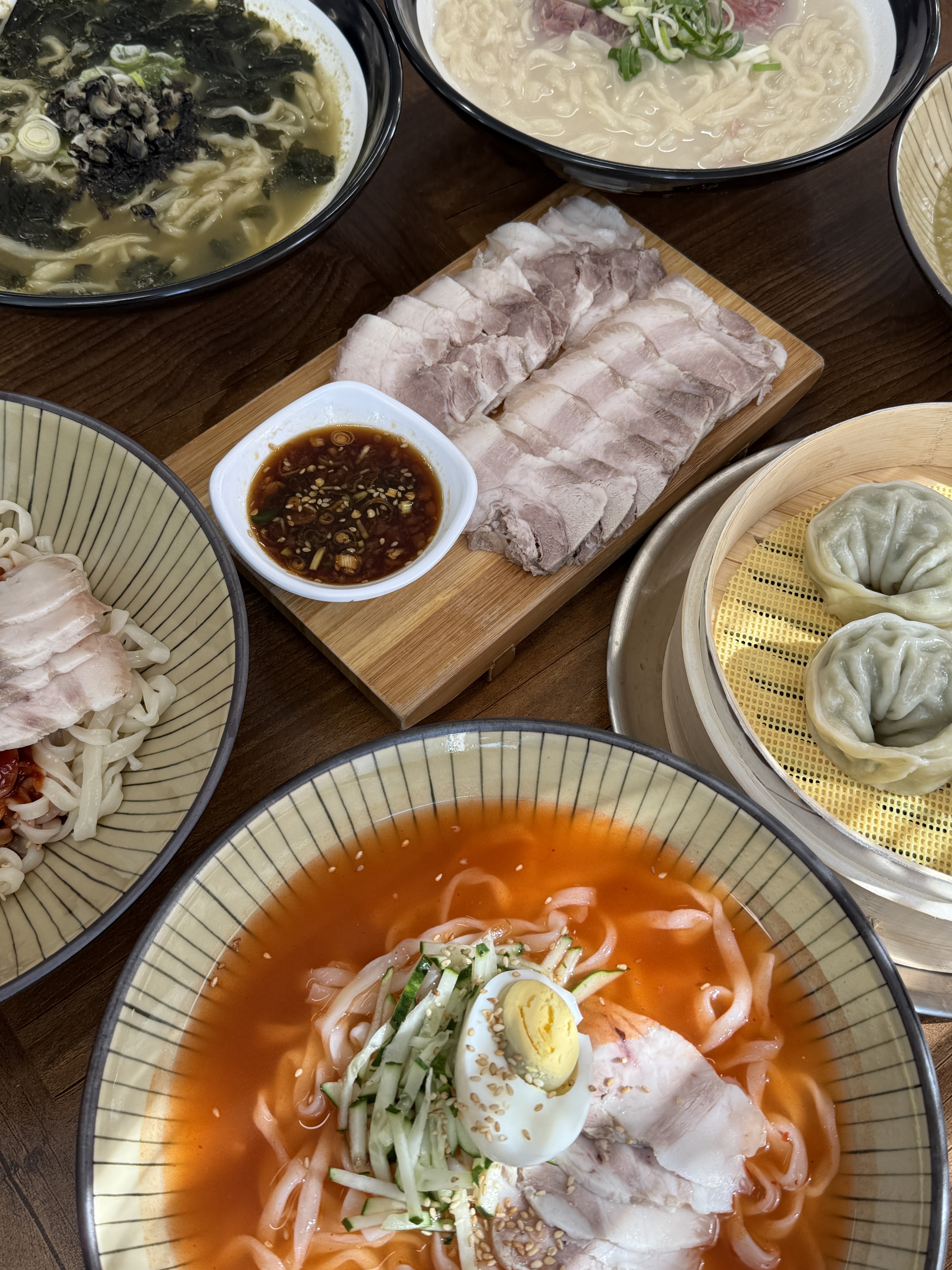 제주도 도착하고 첫 끼로 먹었는데 너무너무 탁월힌 선택이라고 할 수 있습미다.. 뜨끈한 보말칼국수로 제주 느낌 받으러 왔다가 냉수육이 있길래 못 참고 시켜버렸어요. 음식 너무 깔끔하고 기본 밑반찬도 체고입니다.