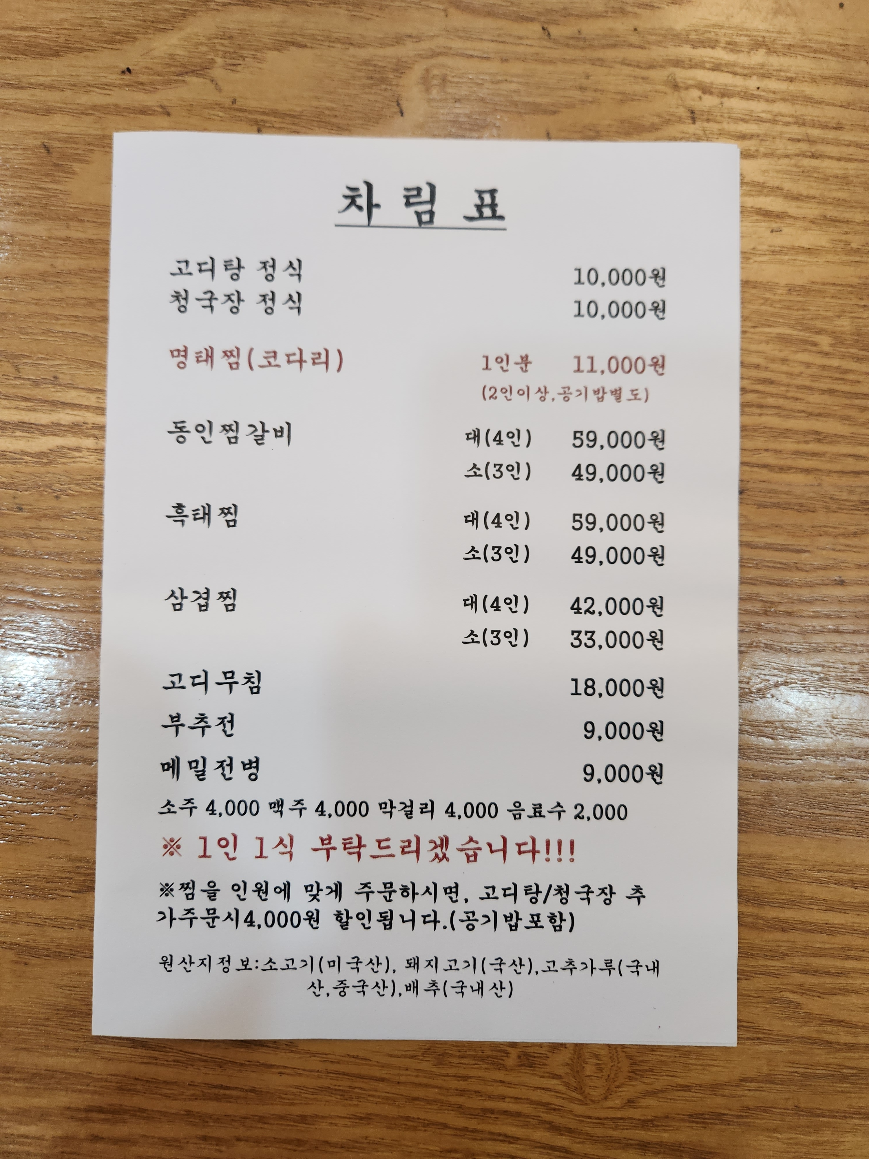 - 통코다리찜 1인 12,000원