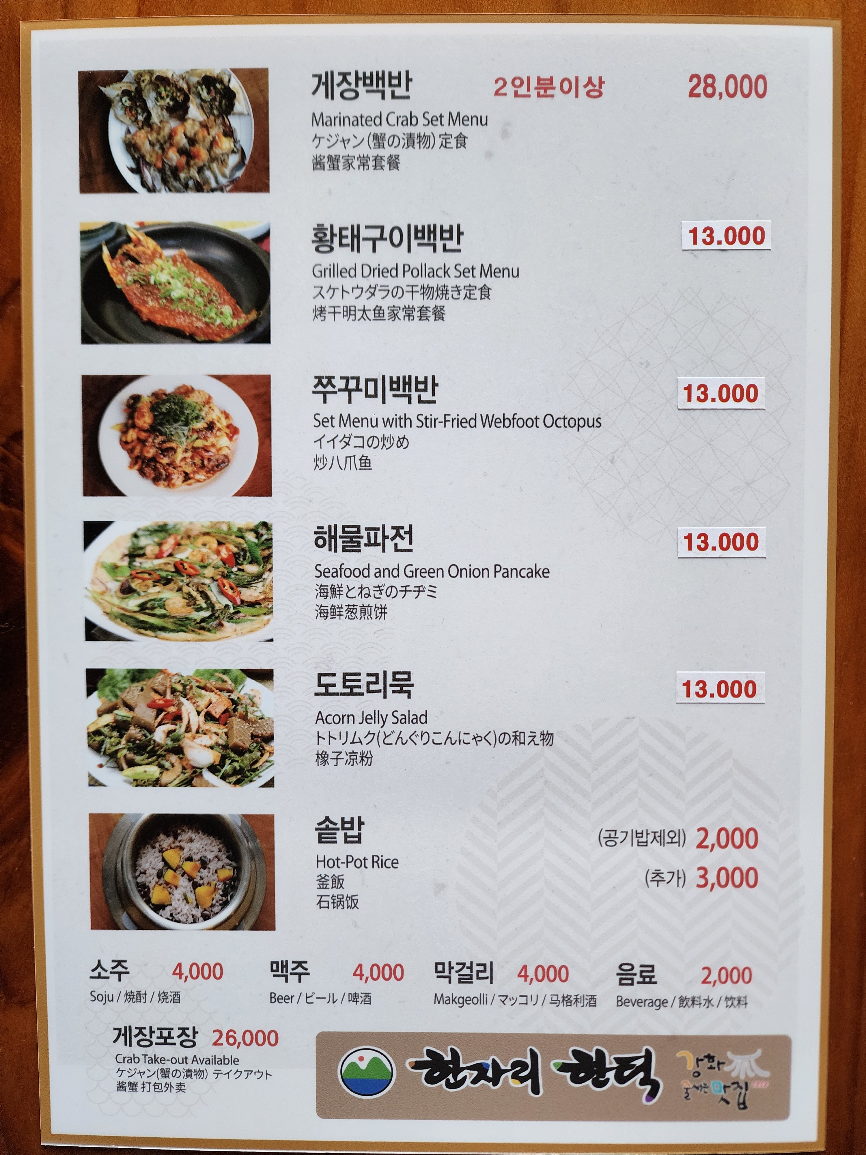 - 게장백반 1인 28,000원