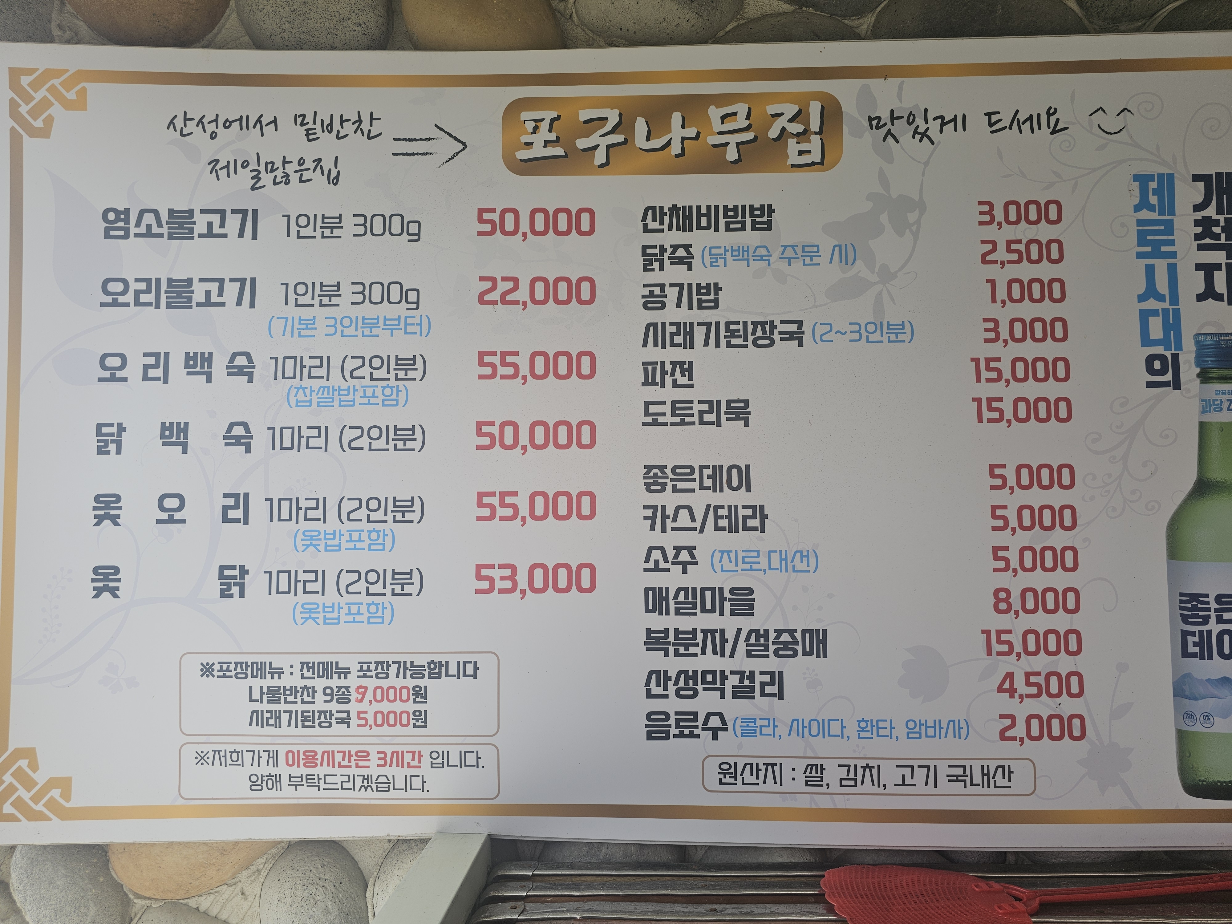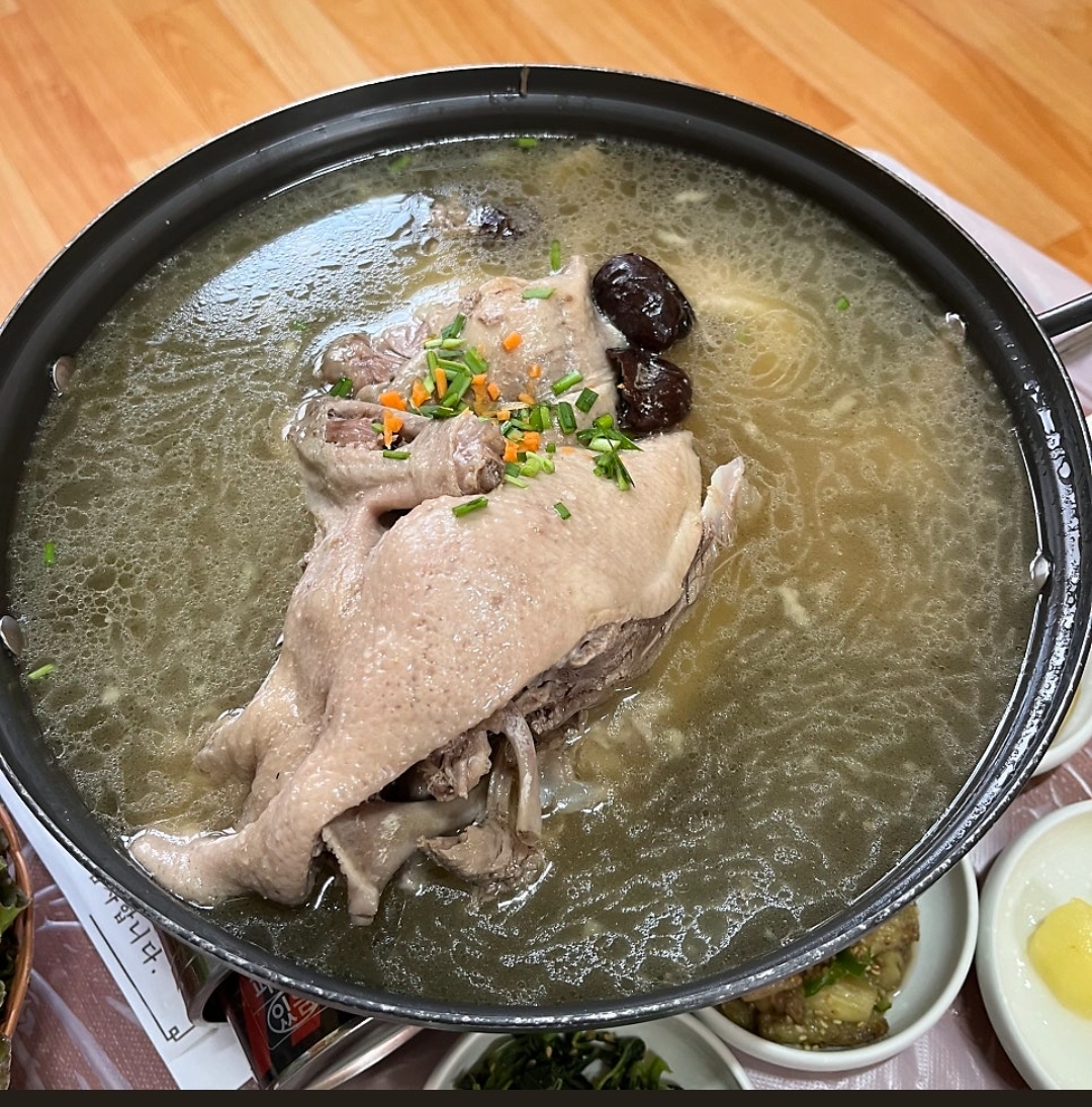 산성 포구나무집 오리고기 먹고 왔는데 고기 맛있고 백숙 미리 예약했더니 바로 먹게 준비해주셔서 좋았고 오리숯불구이 불향 나는게 맛있었어요. 한상 그득 반찬 나오는 것도 반찬이 다 맛있어 좋았습니다.