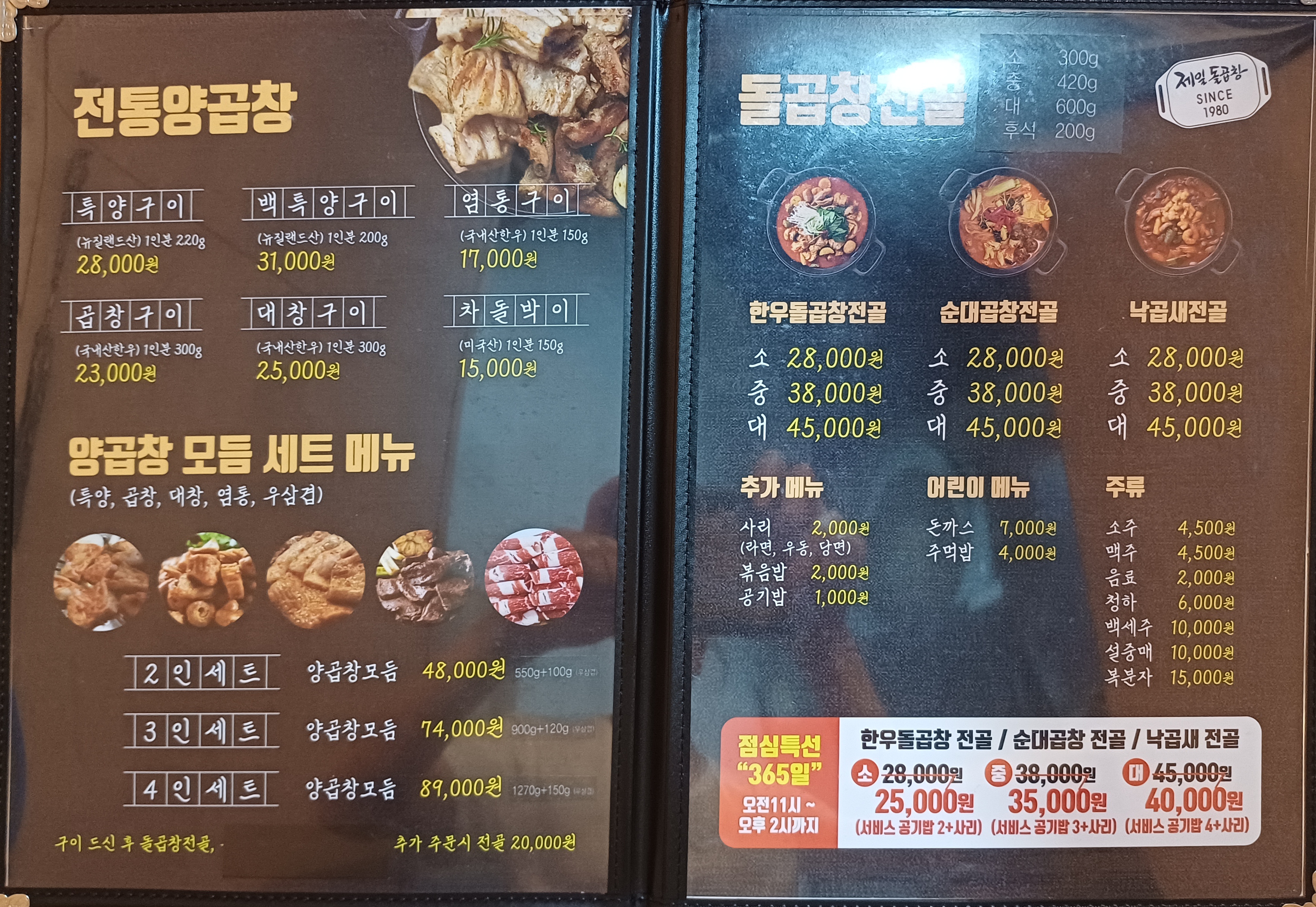 - 한우돌곱창전골(대) 45,000원