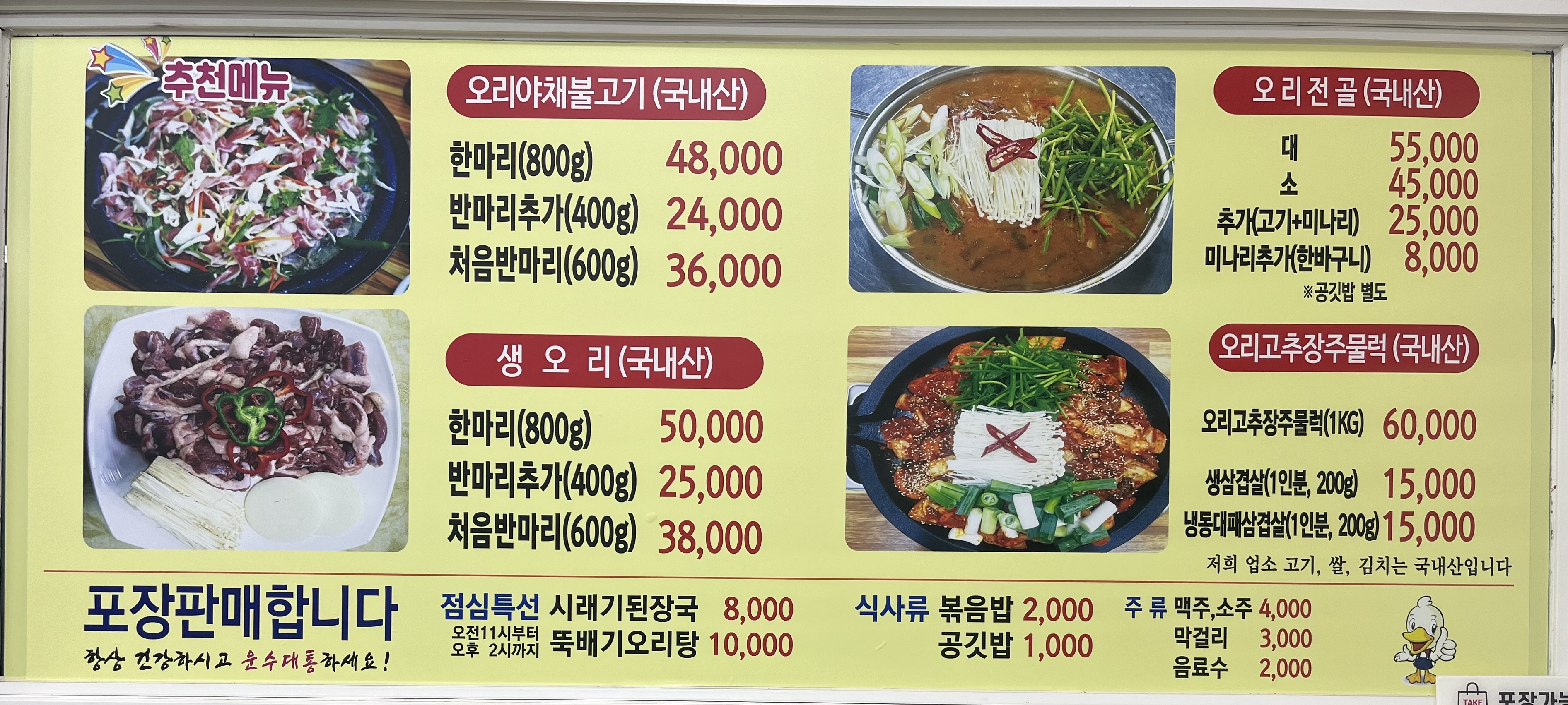 • 오리야채불고기한마리 48,000원