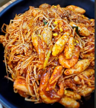 비주얼부터 최고! 낙지 다리가 통째로 올라가 있고, 양념 색감이 진하고 윤기가 돌아서 식욕을 자극했어요. 양념도 고르게 배어 있고, 통통한 오징어,곤이,알, 콩나물 등이 잘 어우러져 있어서 너무 맛있었습니다! 4명이서 먹아도 충분했어요! 중간맛잉데도 살짝 매웠으요ㅜㅜㅋㅋㅋㅋ 잘 먹었습니다!