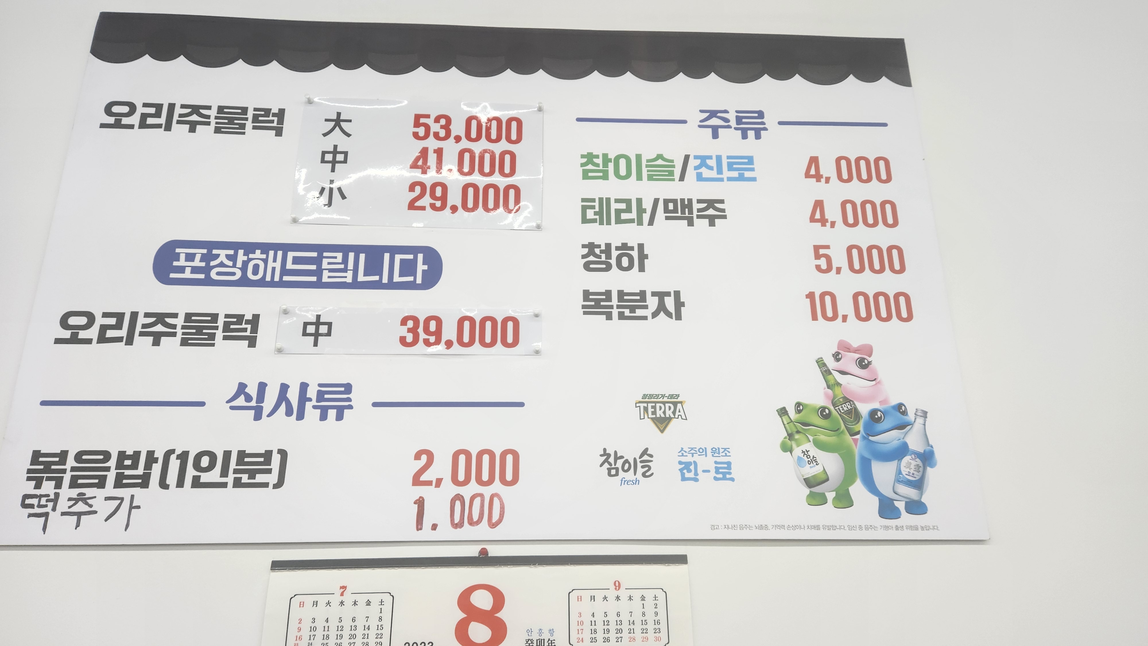 - 포장 오리주물럭 중 39,000원