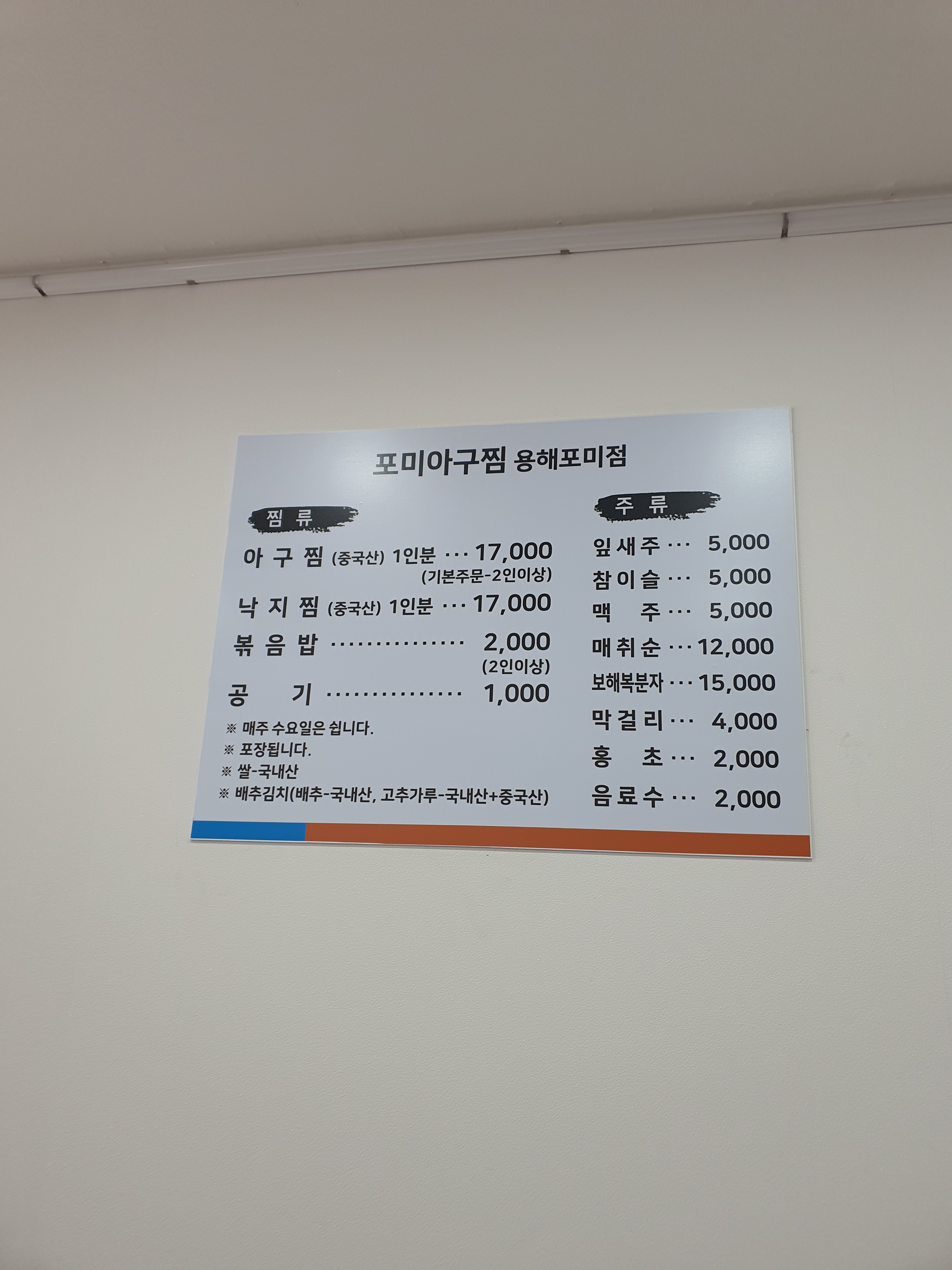 - 아구찜 1인분(2인이상) 17,000원