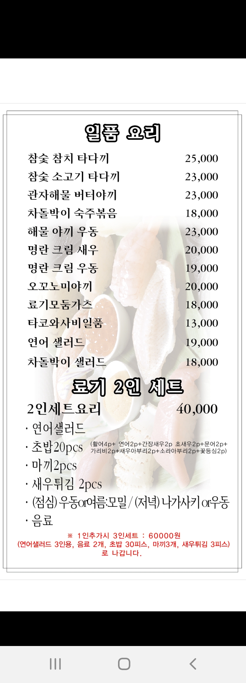 - 일품요리 18000~25000