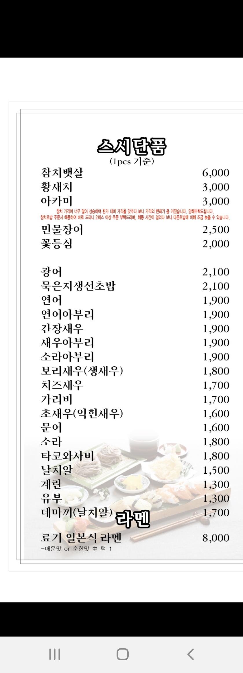 킬 미양도 많고 초밥이 맛있어요 👏