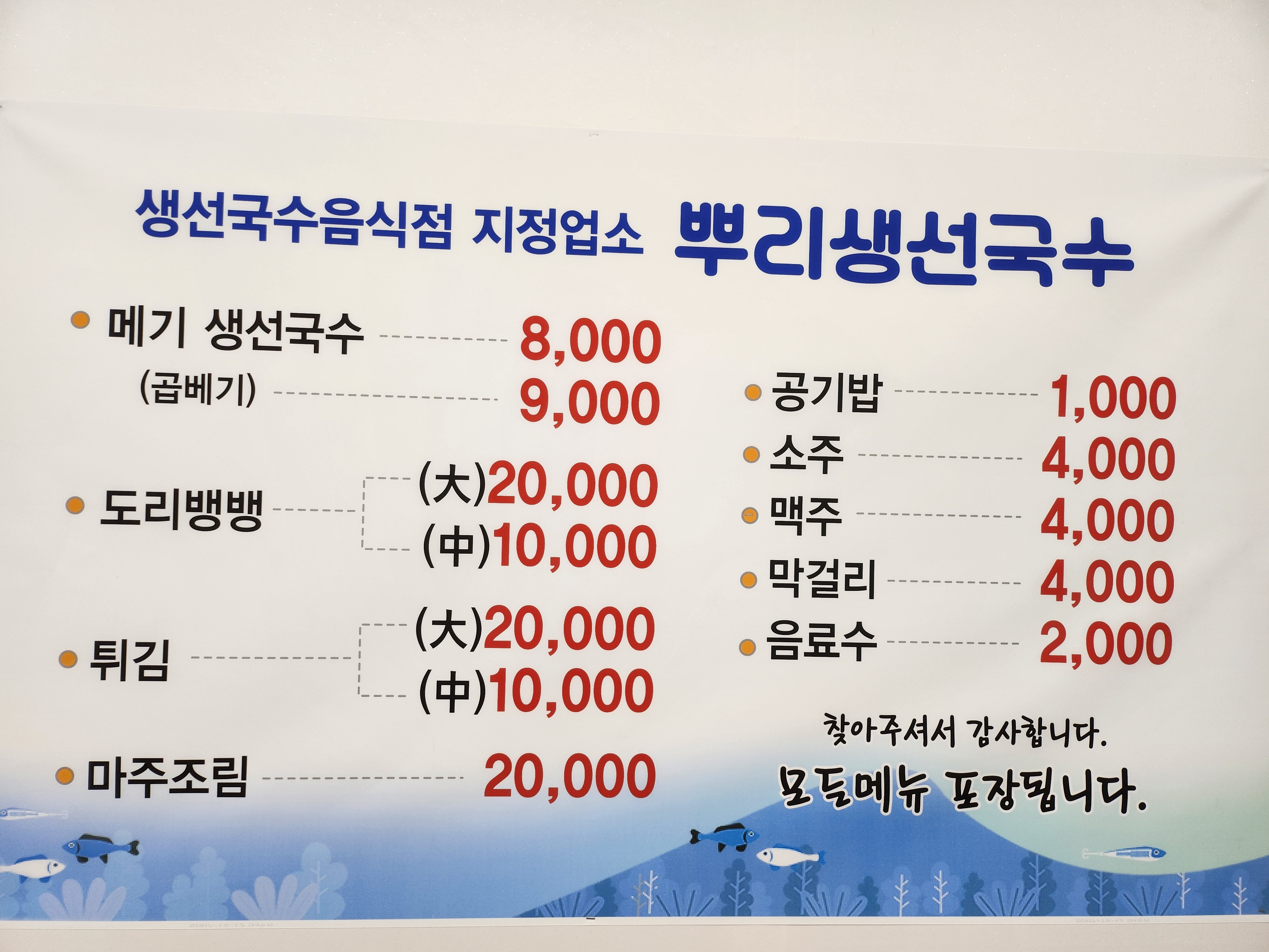 - 메기 생선국수 8,000원