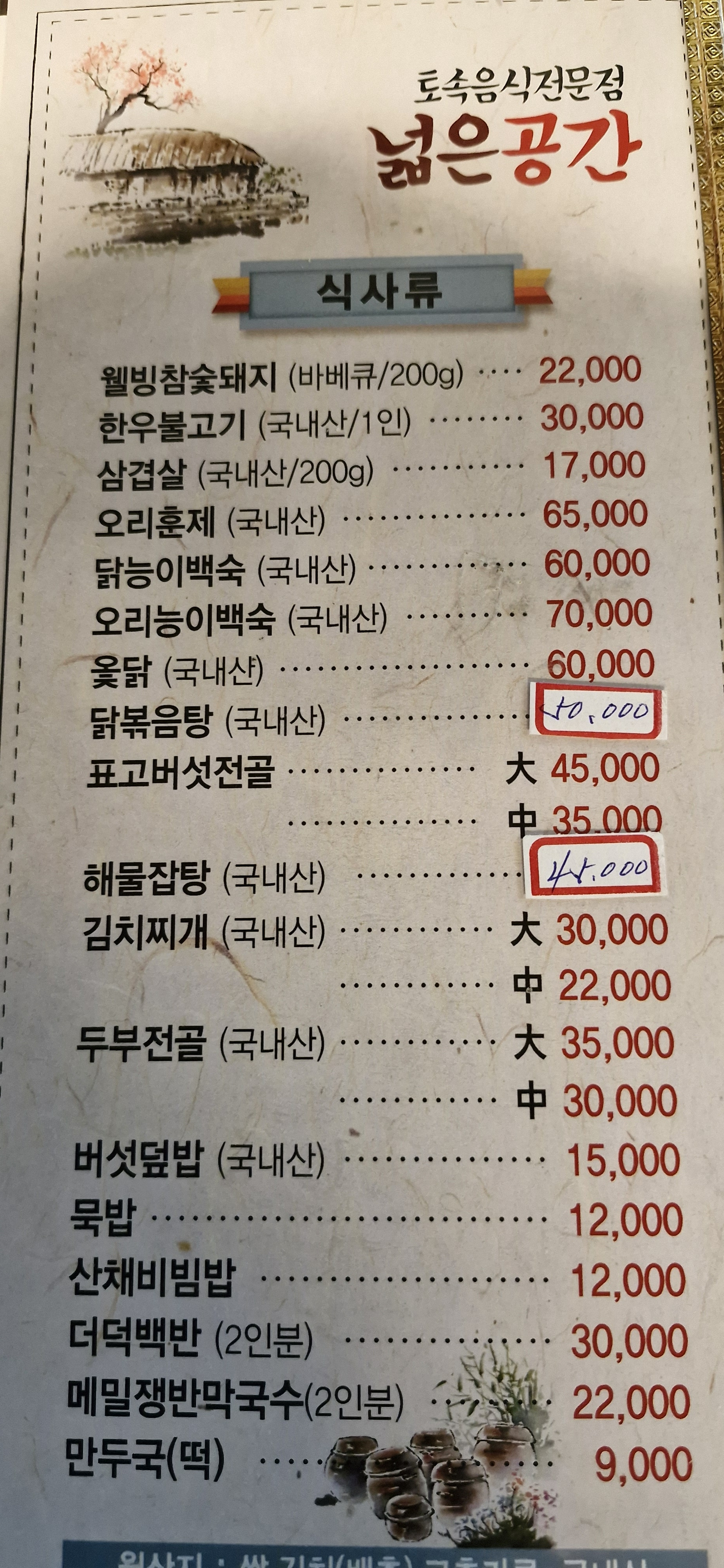 - 닭볶음탕 50,000원